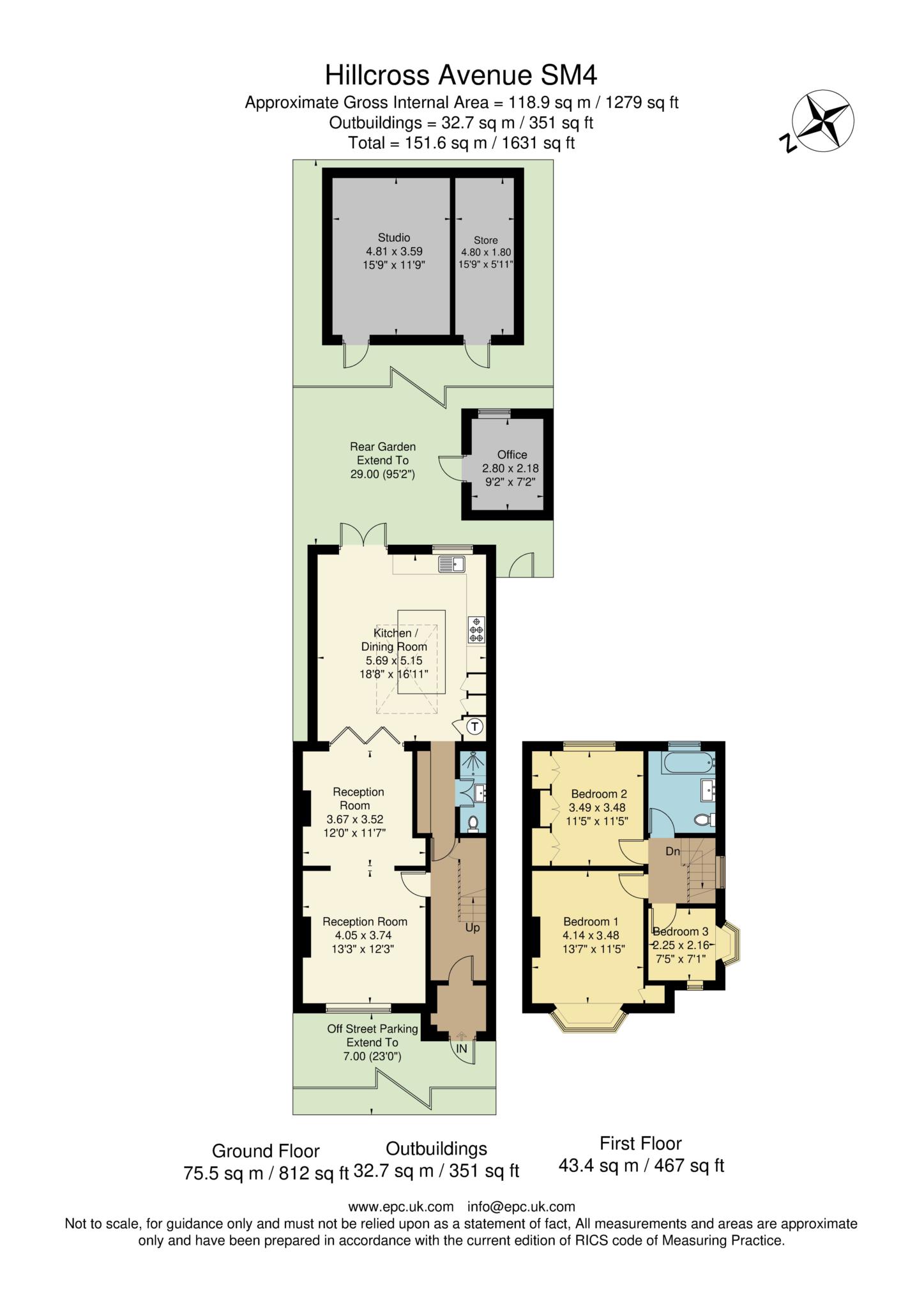 An extended three bedroom semi-detached house offering unusually spacious ground floor accommodation combined with a range of luxury fittings and generous storage space. 95` rear garden backing Morden Park. Two garden buildings, one currently used as an air conditioned office. Off street parking.