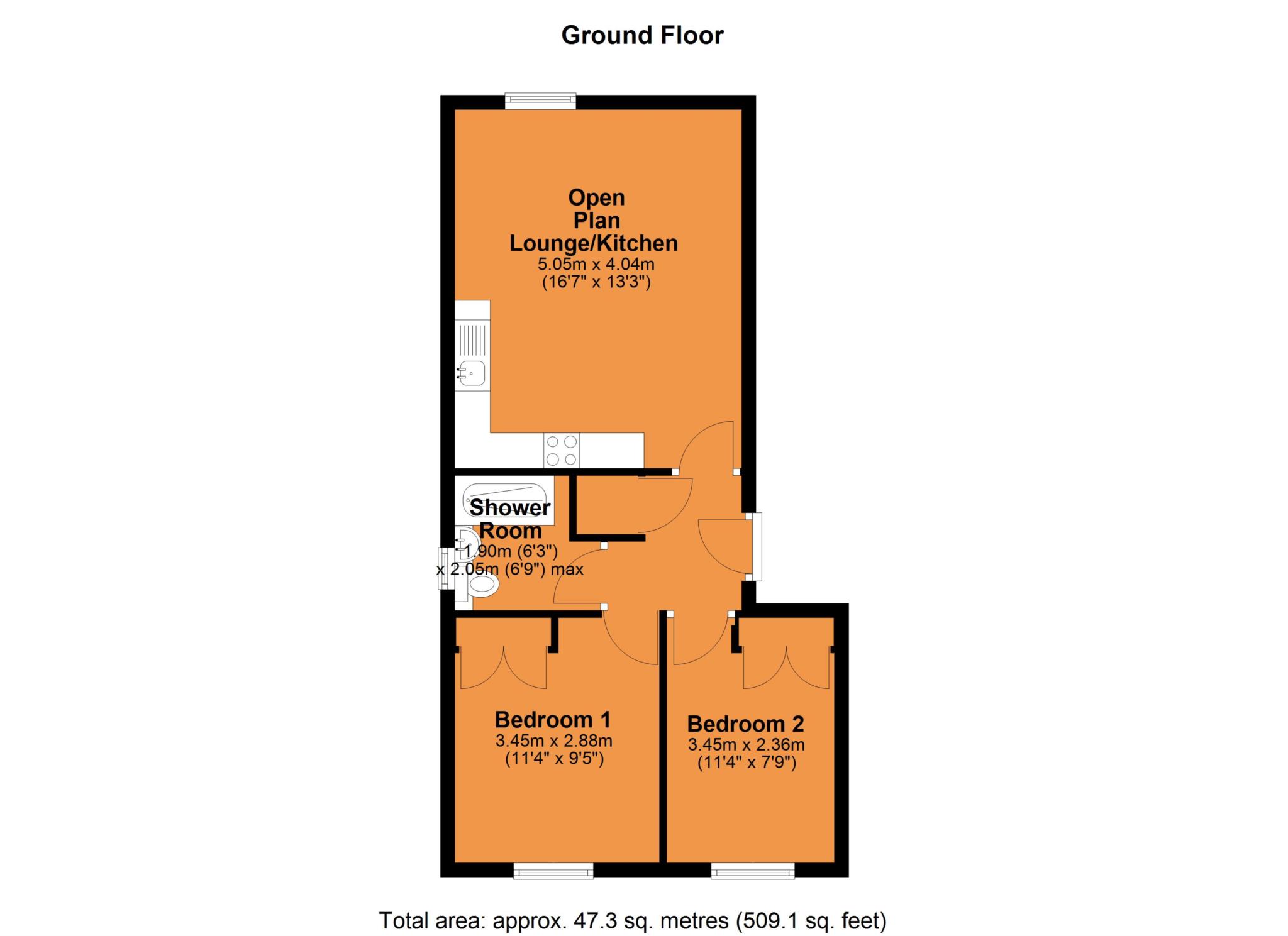 Open Plan Lounge/Kitchen - 5.05m (16'7") x 4.04m (13'3")