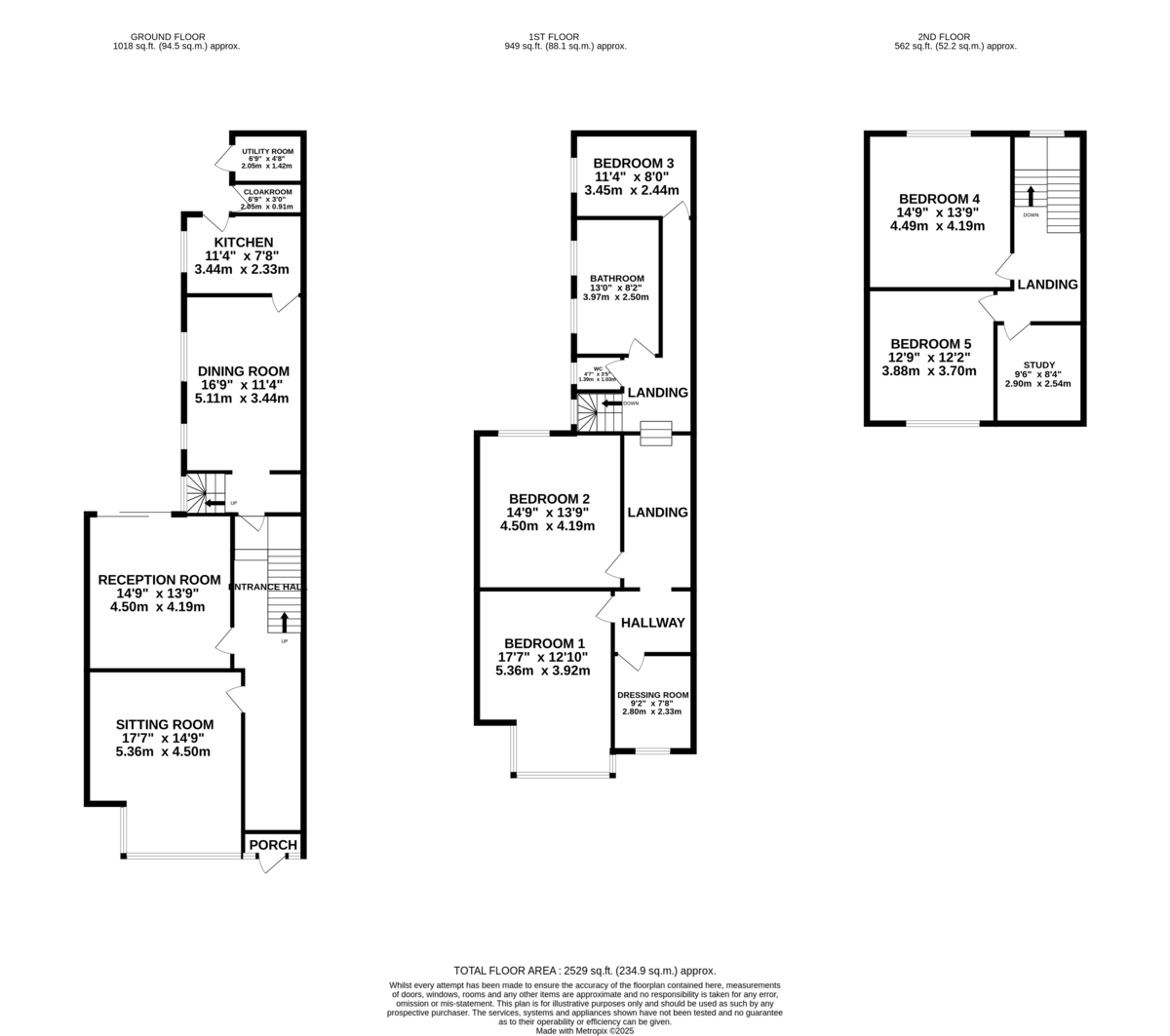 SECOND FLOOR LANDING On the second floor there is access to a further two double bedrooms and a further room ideal as a study. There is a large timber framed sash window on the half landing overlooking the rear aspect.