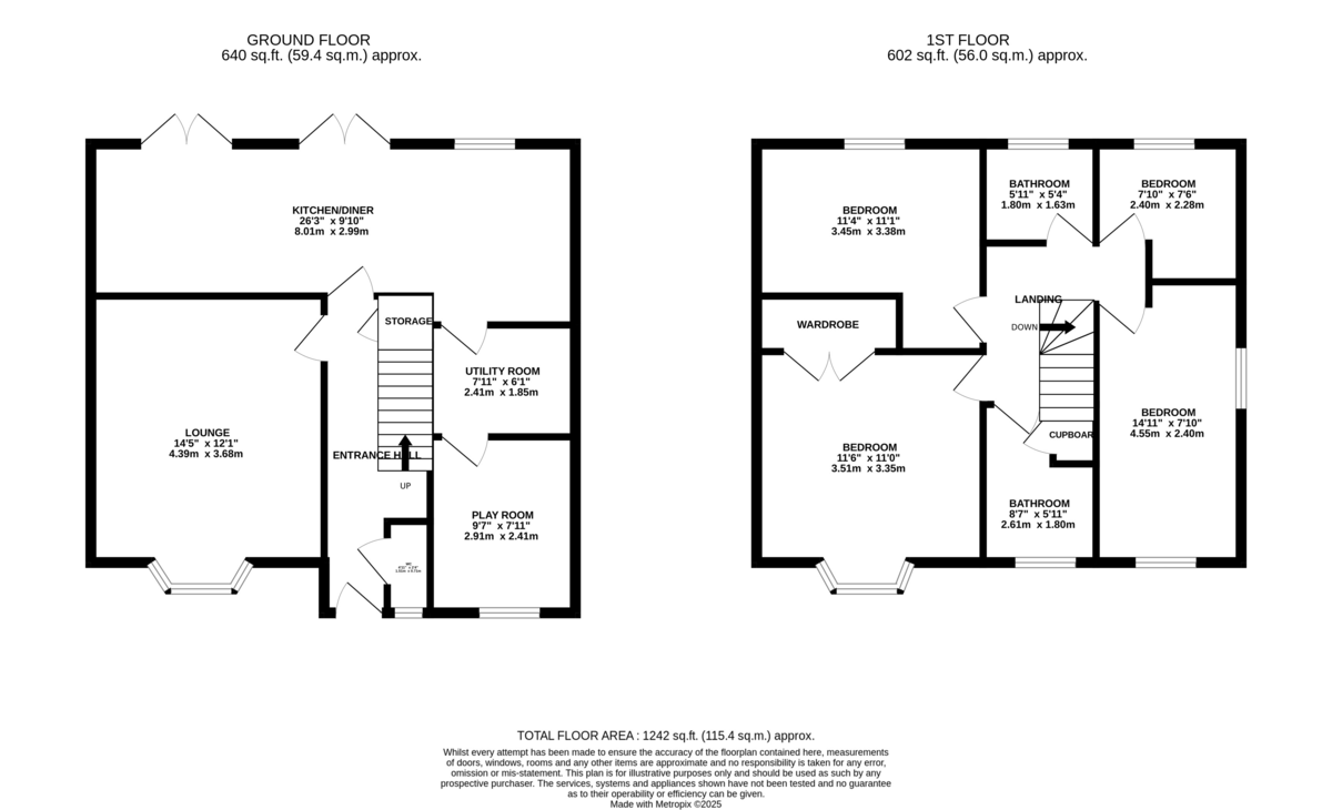 BEDROOM 11' 6" plus bay x 11' (3.51m x 3.35m) With built in wardrobes, bay window to the front elevation, spotlights and radiator.