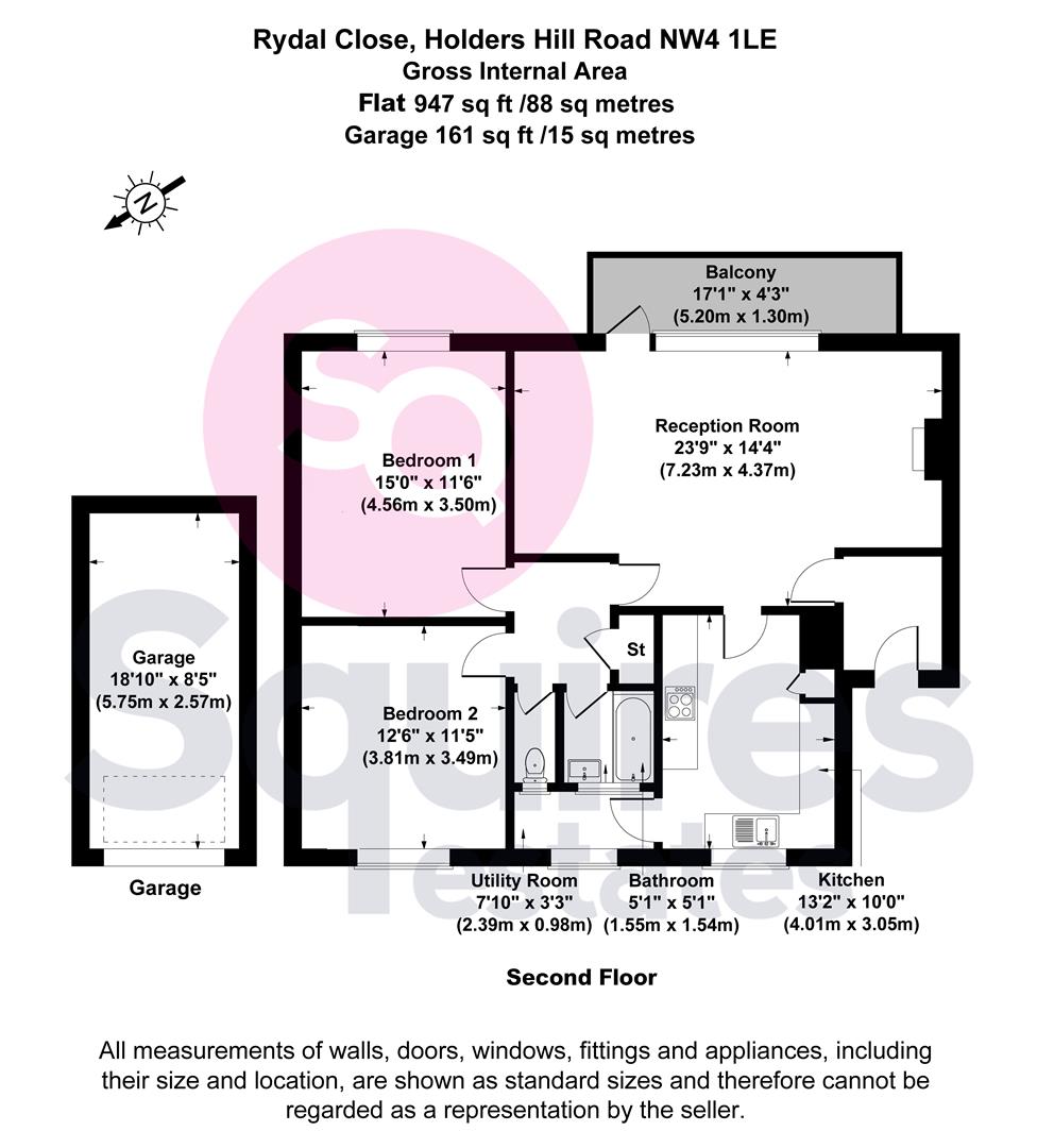 **CHAIN FREE** A very well presented 947 sq ft 2 double bedroom flat situated on the second (top) floor of this popular purpose built block. The property features a 23ft reception/dining room with direct access to a private balcony and further benefits include a 13ft kitchen/breakfast room, a 15ft master bedroom, double glazing throughout, lovely communal gardens and a GARAGE. The flat is very well located for a parade of shops and Windsor Open Space and would make an ideal first time purchase.