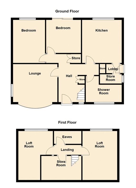 NO CHAIN ...An individually designed two bedroom detached bungalow offering spacious and versatile accommodation. The property is in need of some modernisation and briefly comprises: hallway with storage, dual aspect lounge, kitchen, two bedrooms, shower room and two loft rooms. The property occupies a generous plot also off road parking. Call now to book a viewing!