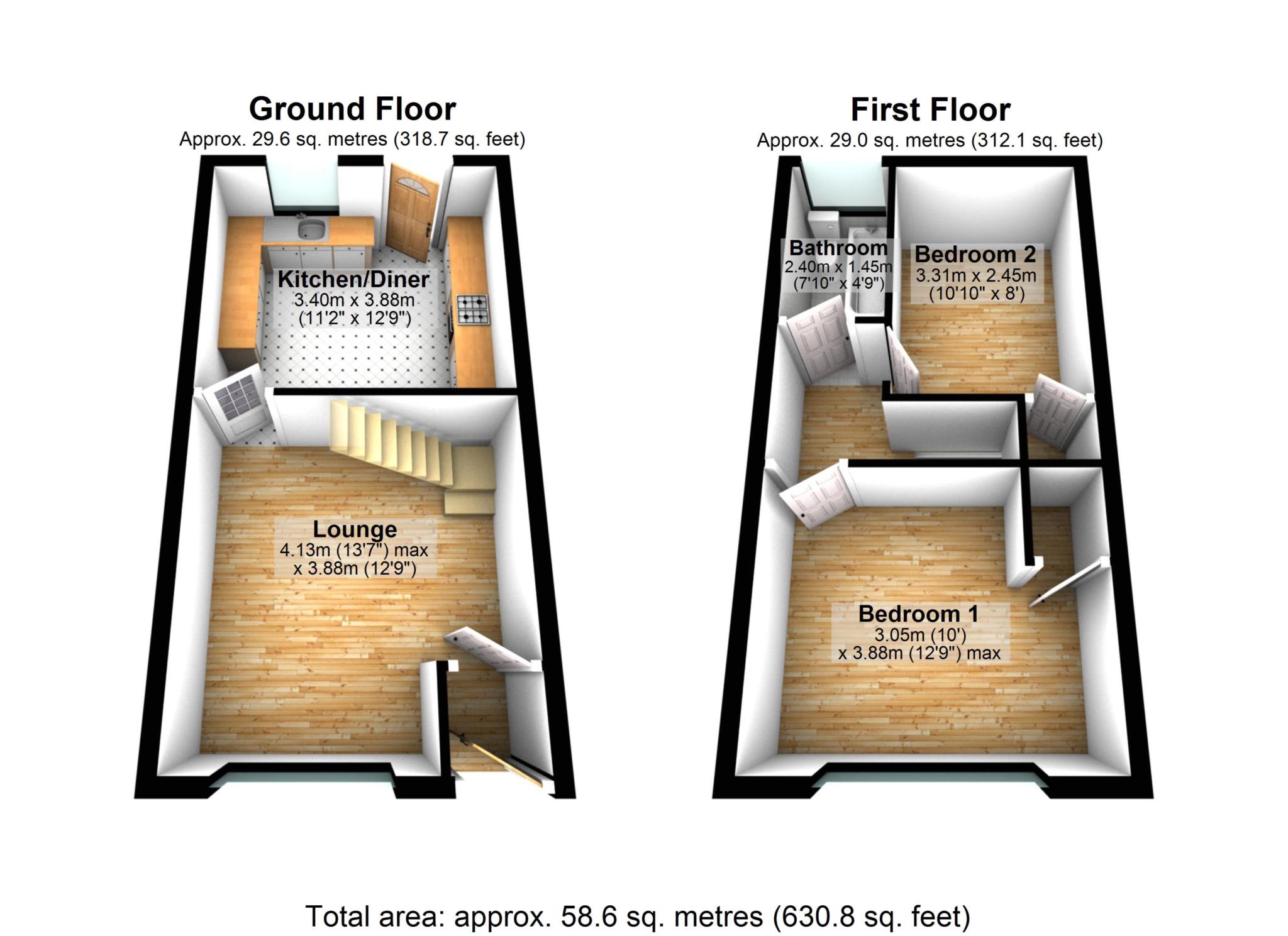 The home briefly comprises of a vestibule porch giving access into a reception lounge and a well proportioned fitted kitchen on the ground floor. To the first floor there are two bedrooms, both will accommodate a double bed and a three piece family bathroom.