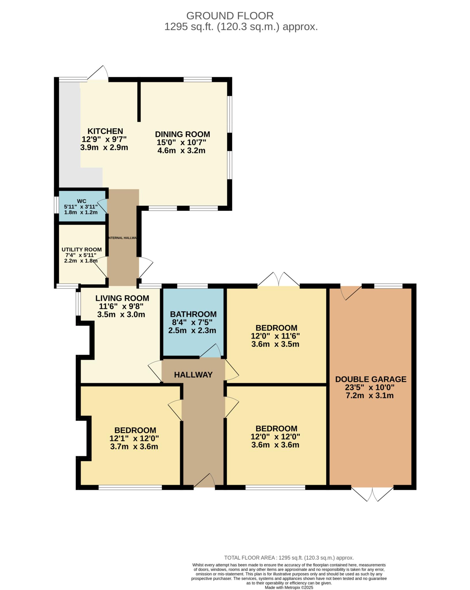 The rear garden is mainly laid to lawn and extends to approximately 95 feet, providing ample outdoor space for relaxation or development.
