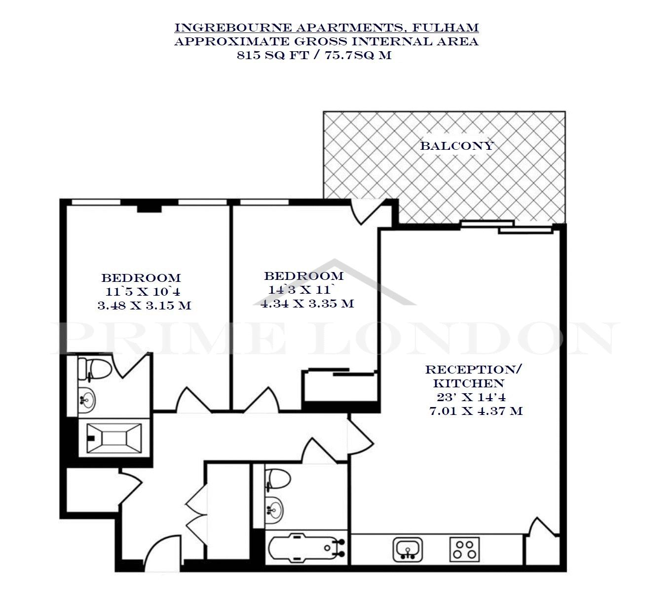 An excellent two bedroom, two bathroom apartment of 815 sq ft (75.7 sq m), with its own private balcony overlooking the surrounding area, is available for chain free sale through Prime London.