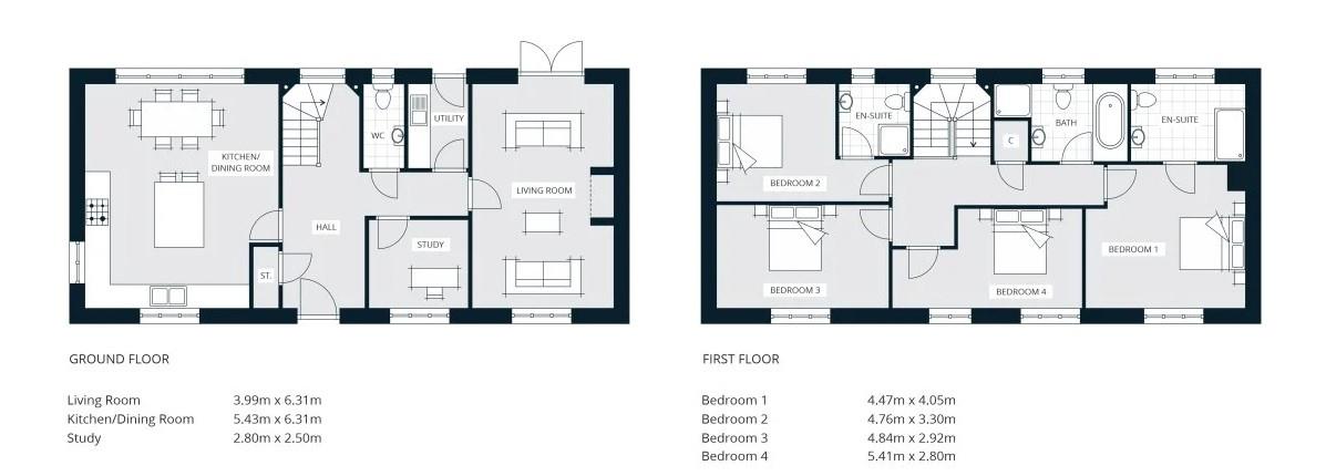 The accommodation includes an entrance hall, a spacious living room with a feature fireplace, a fabulous kitchen/dining room with Neff and Smeg appliances, a utility room, a downstairs WC and a study. Upstairs there are four double bedrooms, a bathroom and 2 en suite shower rooms.