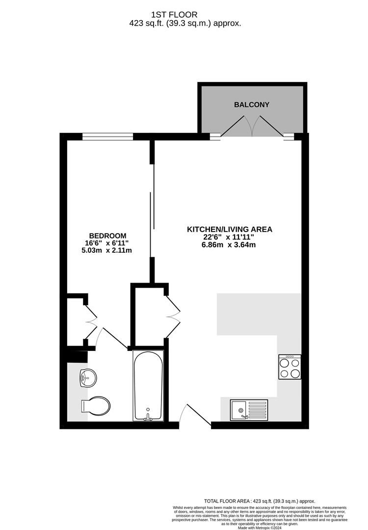 Description - This chain-free apartment comes with a long lease, offering you peace of mind and security for the future. With 423 sq ft of living space, this apartment is perfect for individuals or couples looking for a stylish and low-maintenance home.