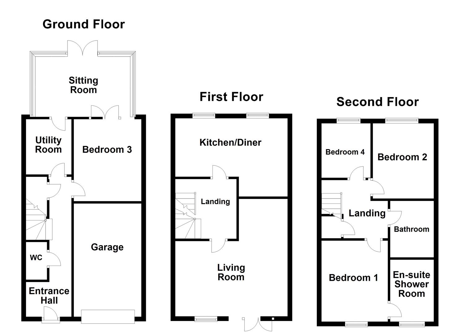 The property briefly comprises of the entrance hall, downstairs w.c., utility room, bedroom three and extended sitting room. The first floor landing leads to the living room and kitchen/diner. A further set of stairs leads to three further bedrooms and house bathroom. Outside to the front is a mature shrub garden and driveway leading to the single integral garage. To the rear is an enclosed garden with an artificial lawn, mature shrubs and a slate beds.