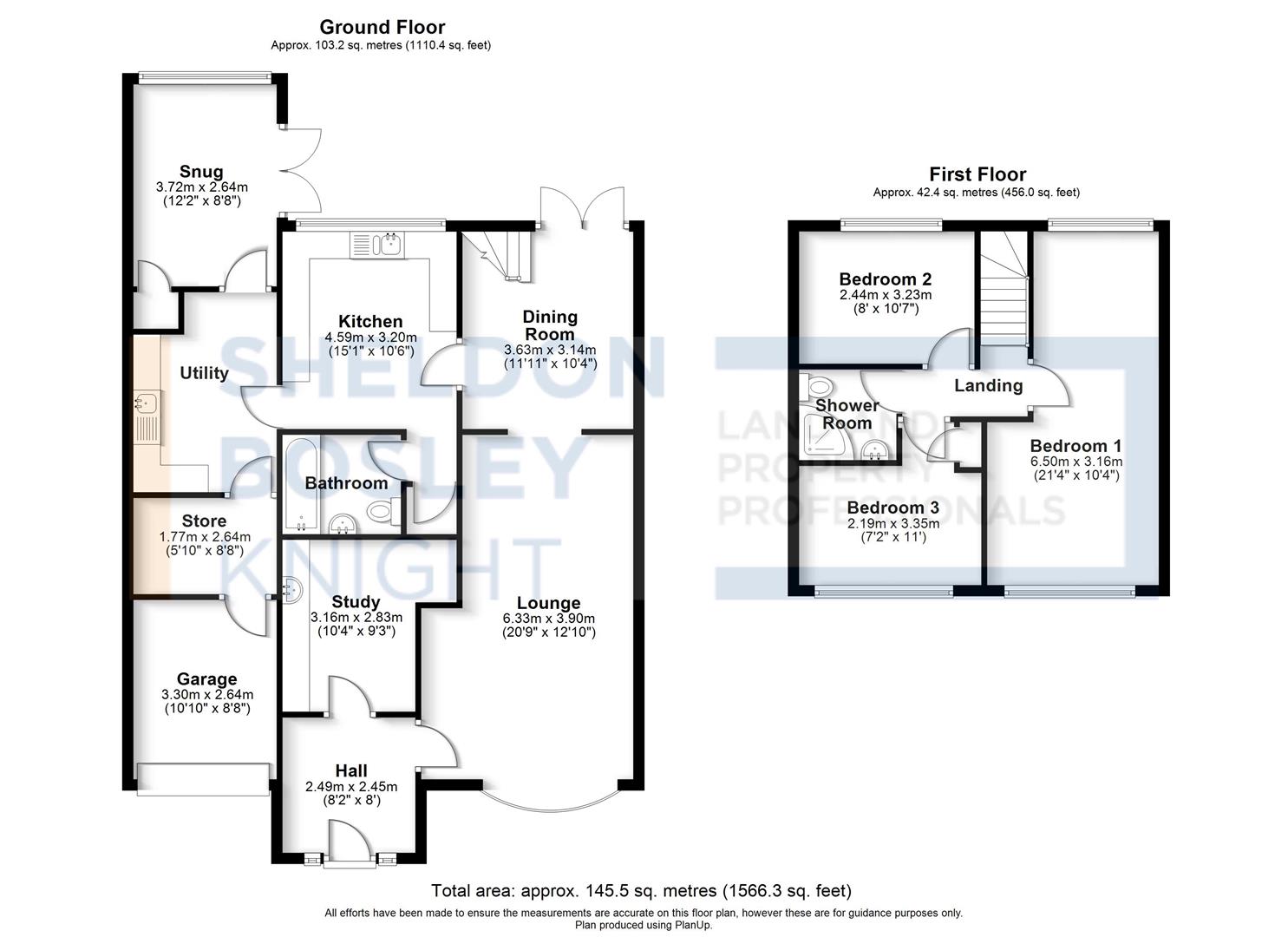 The ground floor comprises a welcoming entrance hall leading to a study, currently used as a home workspace. The lounge features a log burner and flows into the dining room, which benefits from patio doors opening to the rear garden. The kitchen is fitted with a range of units, space for a range cooker, and integrated appliances, and connects to a separate utility room providing additional storage and space for white goods. The ground floor also includes a stylish, fully tiled bathroom with a rainfall shower over the bath, as well as a handy snug at the rear offering further flexibility. A store room and access to the part-converted garage are also located on this level.