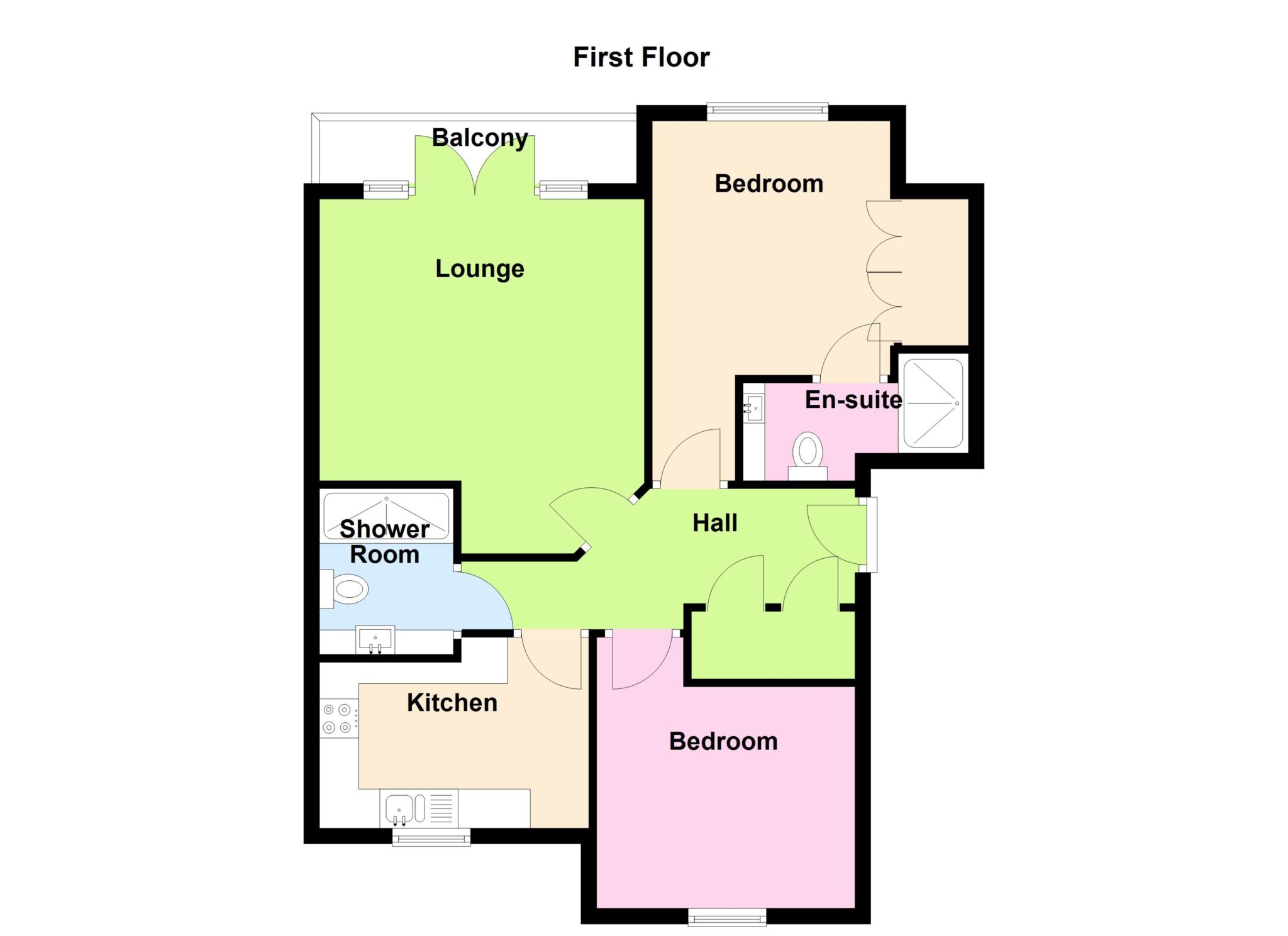 A 2 bed well maintained first floor flat. The accommodation offers a lounge with balcony, refurbished kitchen and shower rooms, en-suite. PVCu double glazing is installed. Outside is an allocated parking space.