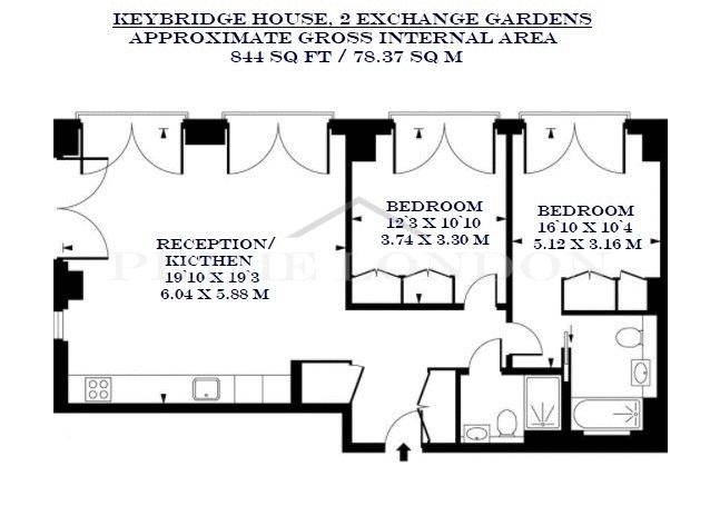 The property is an ideal size at 844 sq ft / 78.37 sq m and comprises of a dual aspect open plan reception room, smart integrated kitchen, two equal sized double bedrooms with great storage, and two luxury bathrooms (one en suite). The apartment is well designed to be lived in and enjoyed. The property also benefits from having comfort cooling and underfloor heating.