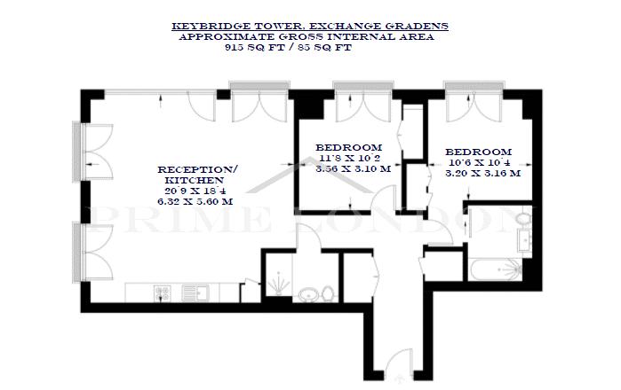 The property is an ideal size at 915 sq ft / 85 sq m and is located in the UK's tallest brick tower, which is also surrounded by 1 acre of landscaped open space.