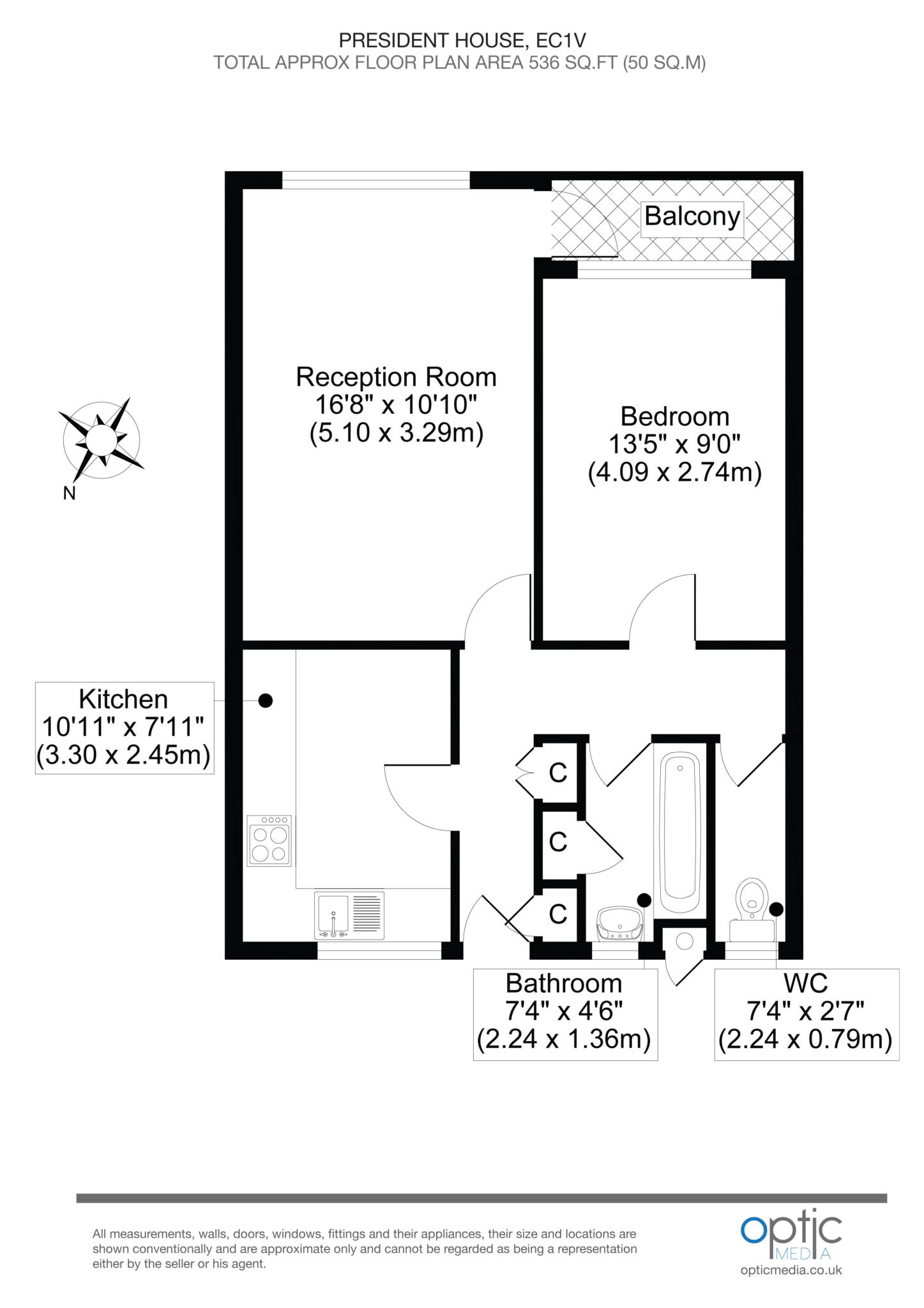 The property is well proportioned and features a fully equipped kitchen/diner, a bright reception room which leads to the private balcony which looks over Kings Square Gardens. double bedroom, a tiled bathroom, adequate storage and a secure intercom entry system.