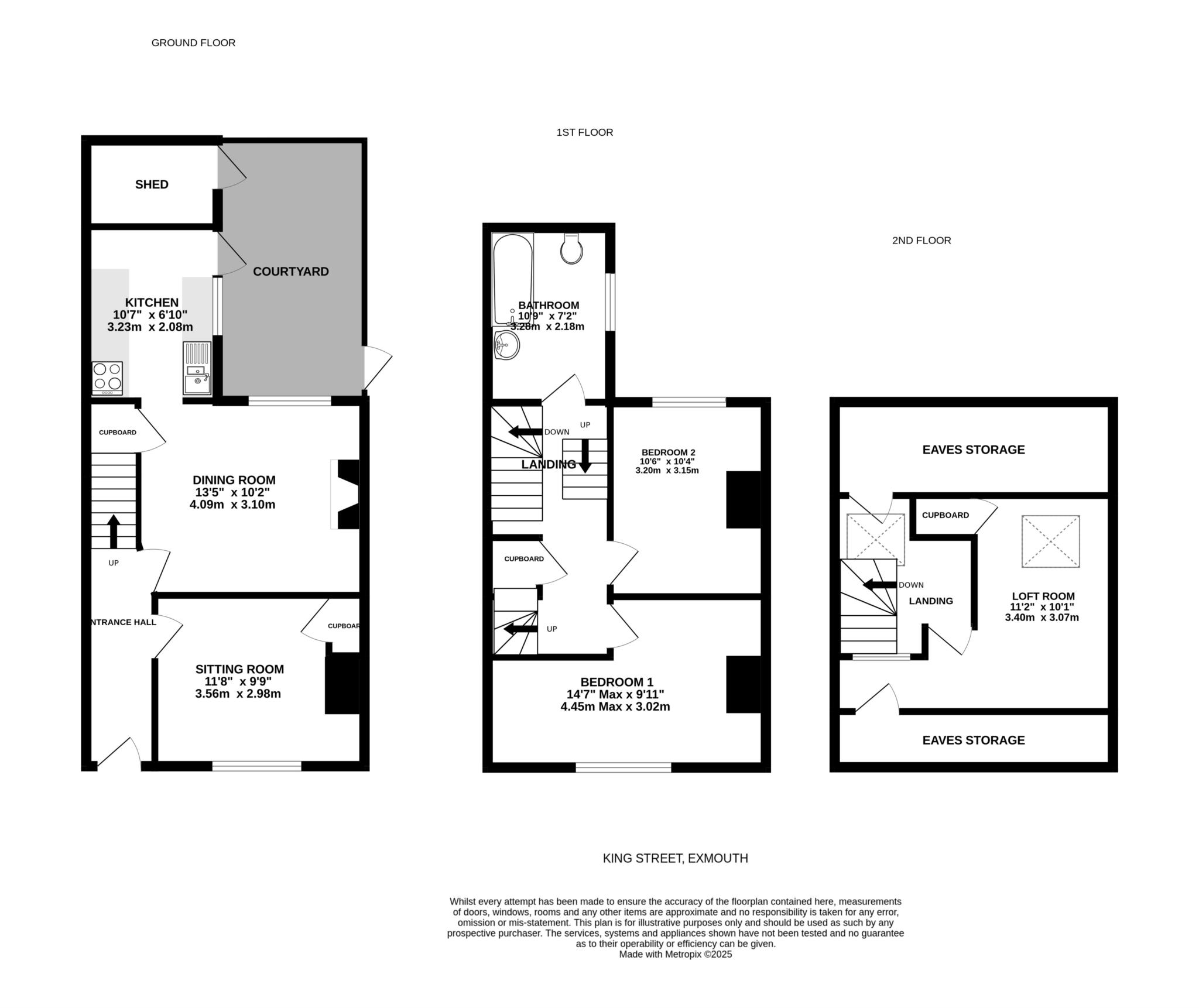There is an enclosed and private Courtyard garden to the rear with brick wall boundaries, useful garden shed and front pedestrian access to side of property via timber garden gate.