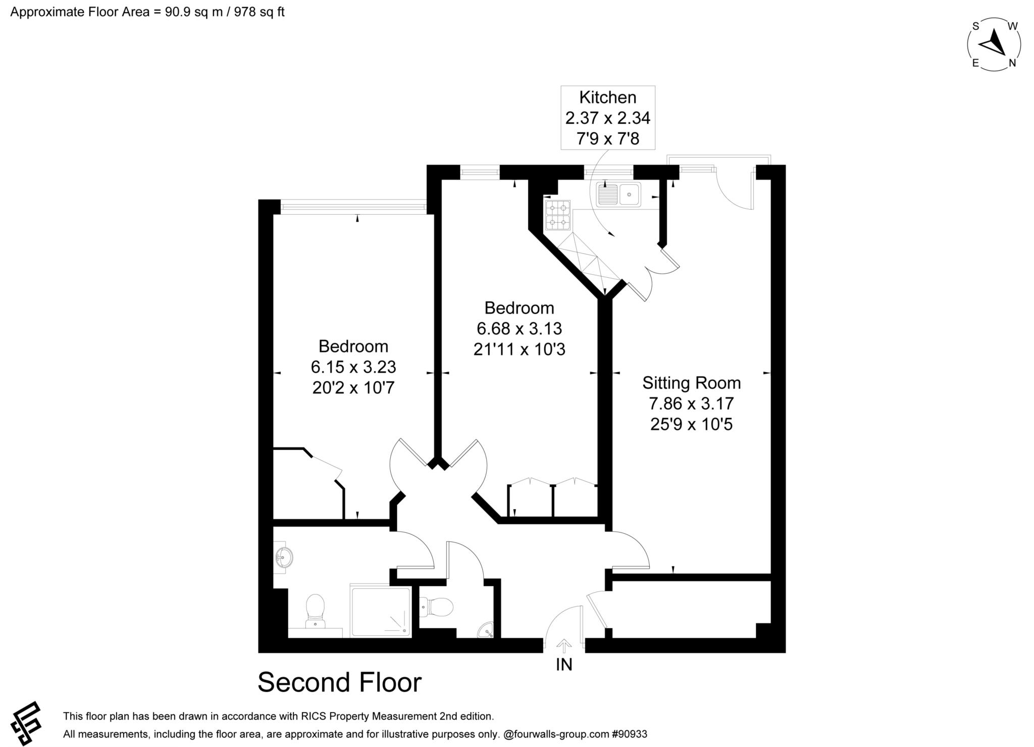 The property features a fully integrated kitchen that benefits from an abundance of natural light, coming from both the kitchen window and light from the glazed doors opening into the living-room. The living room is a bright and inviting space, with ample room for both living and dining, and further benefits from a juliet balcony overlooking the communal gardens. The master bedroom is again bright due to large windows spanning the width of the room, with the added benefit of a walk-in wardrobe. The guest bedroom is a good size double and has a double fitted wardrobe. Off the welcoming hallway there is a large walk-in storage cupboard, a W/C and a bathroom with walk-in shower.