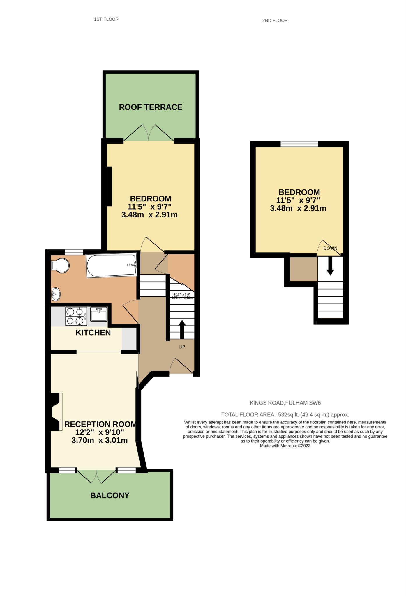 A split-level apartment set in this excellent location. The property has a reception room with a feature fireplace and also opens out to a balcony at the front and a fitted kitchen to the rear and there are also two double bedrooms, one of which opens out to a private roof terrace and a large bathroom which also houses the washing machine. The flat is ideally located for an array of shops and restaurants and is a short walk to Fulham Broadway station. It is furnished and available in September. Security deposit ?3,115 (based on asking price). Council tax band D. EPC rating C