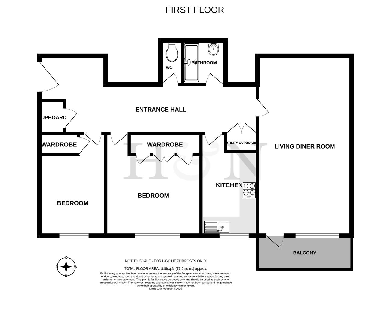 Internal measurements: 818 Square feet / 76 Square metres