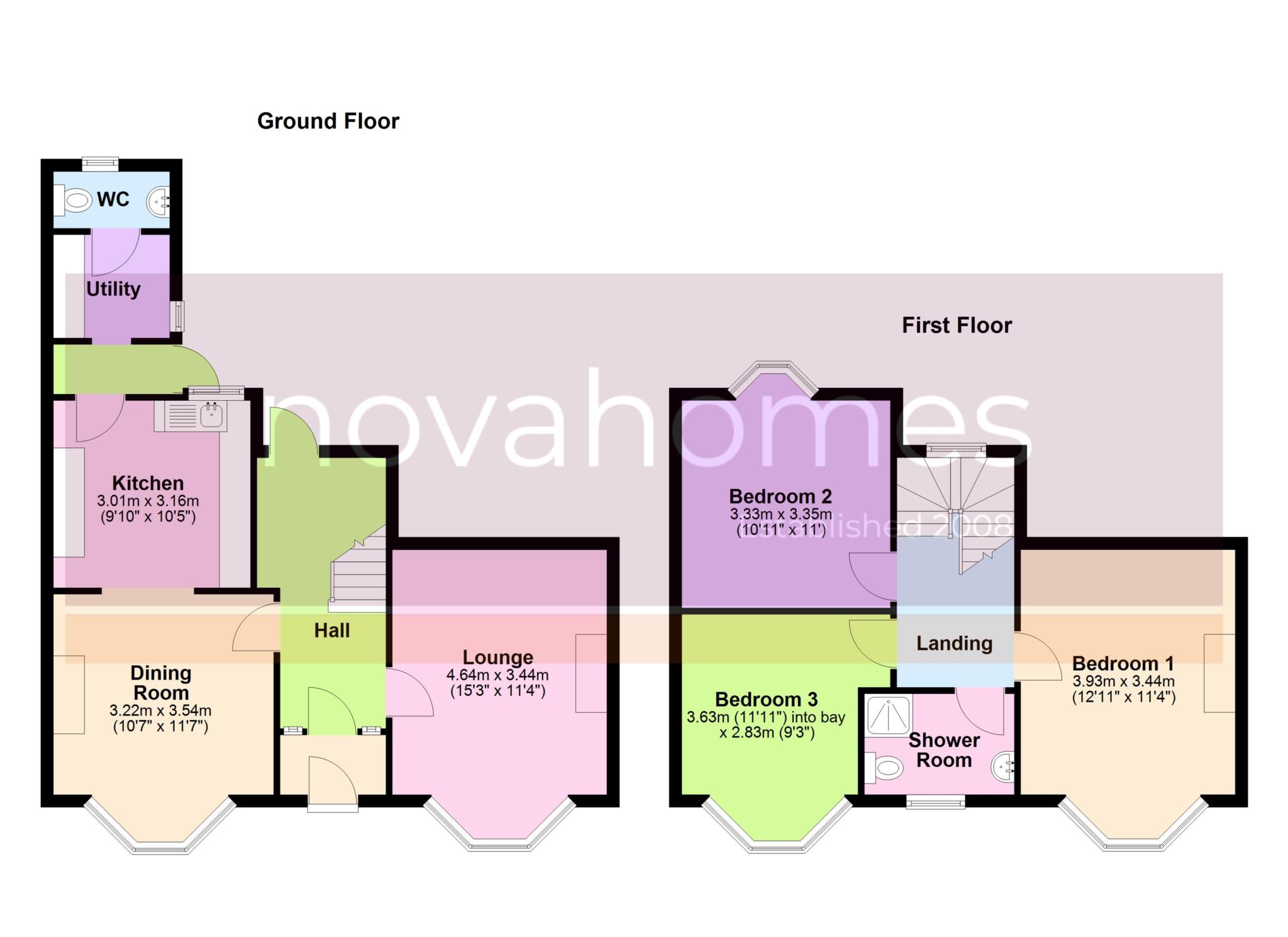Upstairs, three well-appointed double bedrooms provide ample space for a growing family. A modern shower room with a walk-in enclosure and sleek grey flooring completes the first floor.
