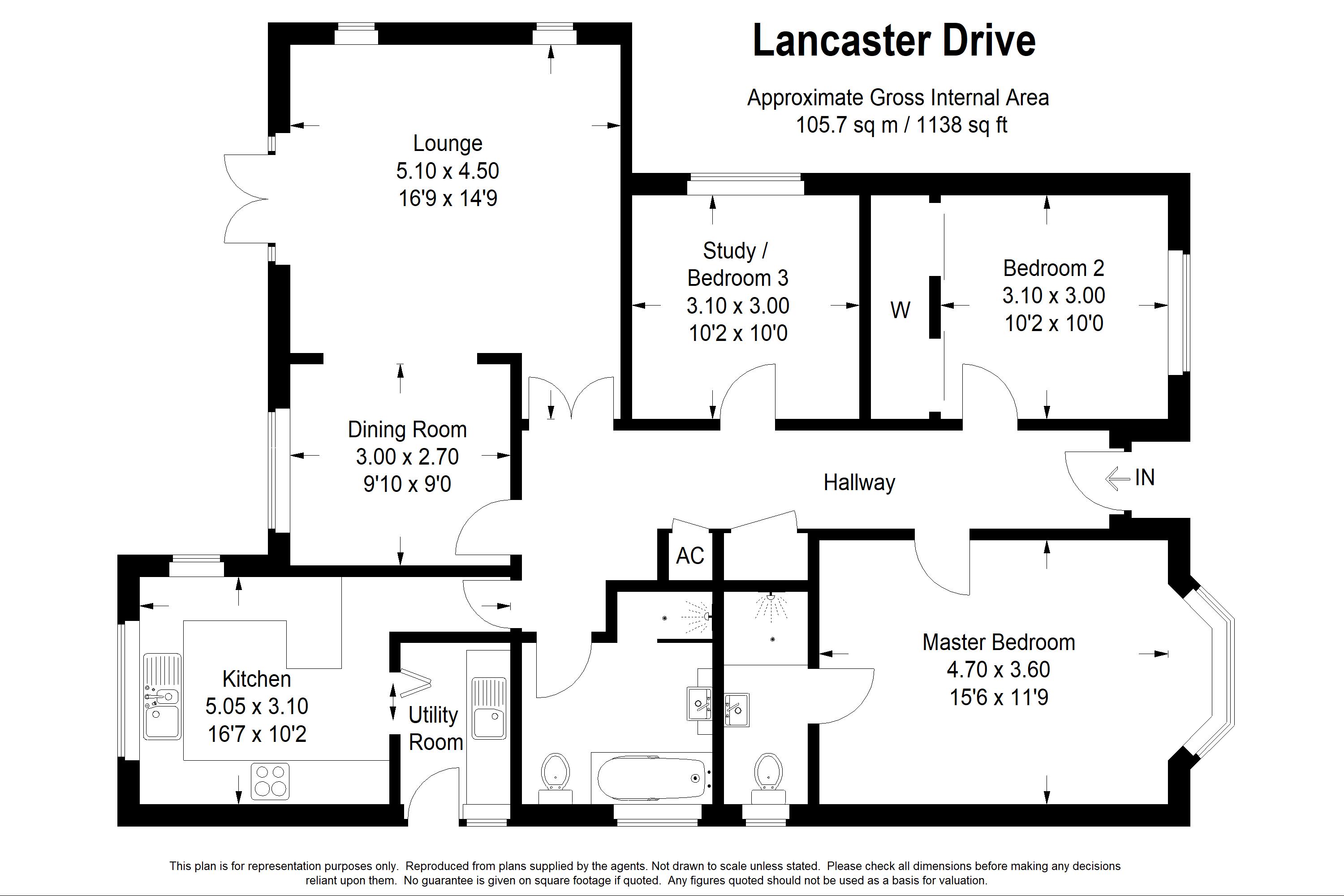 From the centre of Verwood, continue west along Station Road until reaching the roundabout. Take the first exit and proceed along Home Farm Road. On reaching the next roundabout, take the second exit which joins Manor Road. After 0.2 miles, turn right into Church Hill. At the next roundabout, turn left along Margards Lane. Lancaster Drive is the first turning left. Continue to the end of the road and number 36 will be found almost straight ahead.