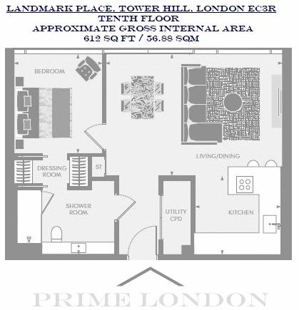 A spacious one bedroom apartment on the tenth (top) floor of Landmark Place, totalling 612 sq ft, available as a brand new purchase through Prime London. Landmark Place holds an unparalleled position in the City of London, and offers private residents' facilities comprising a 24-hr concierge, 20m swimming pool and spa, fitness suite, lounge, cinema room and business suite. Landmark Place benefits from superb transport links. Walk to Tower Hill in just 7 minutes for the Underground Circle and District Lines and walk to Bank in 12 minutes for Underground links to the Central, Northern and Waterloo & City lines.*Photos are of an identical completed apartment*