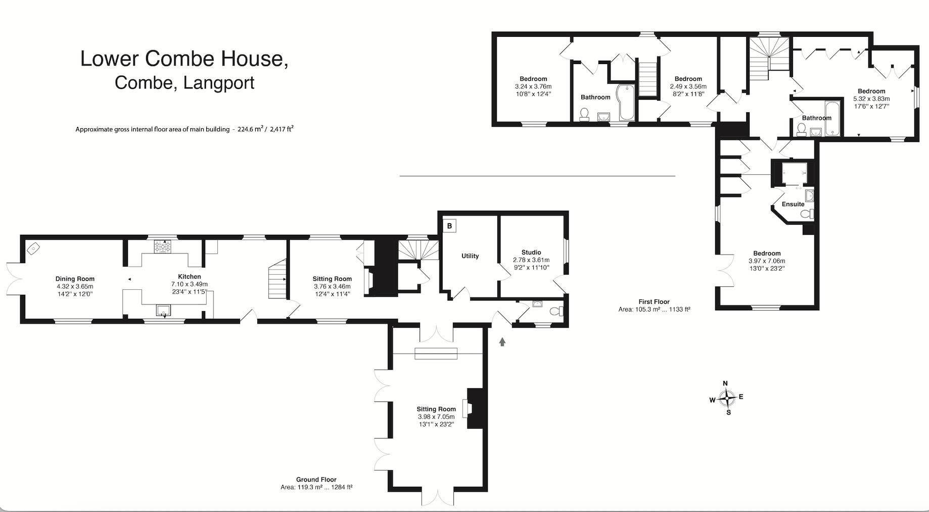 There are two staircases to the first floor. The first leads from the hall to a landing and serves three bedrooms and two bathrooms.The main bedroom has a double aspect with windows and a Juliet balcony, all having great south and westerly views. It also has several built-in wardrobes and cupboards and an en suite shower room.The second bedroom has built in wardrobes and extensive storage. Adjacent is the second bathroom.Also off the landing is a walk-in wardrobe and a door leads into the third bedroom.The second staircase rises from the kitchen to a small landing which serves the third bathroom and the fourth bedroom. There's also another door to the third bedroom which links all the first floor rooms.