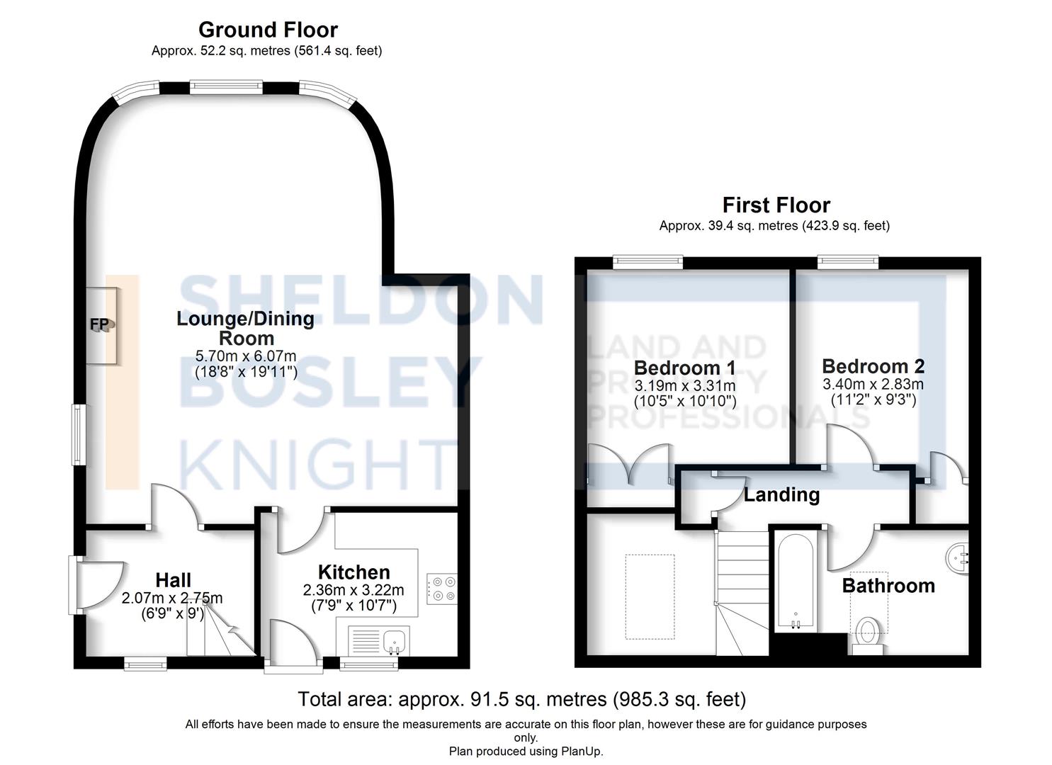 Upstairs, there are two bedrooms and a family bathroom, all accessed from the landing.