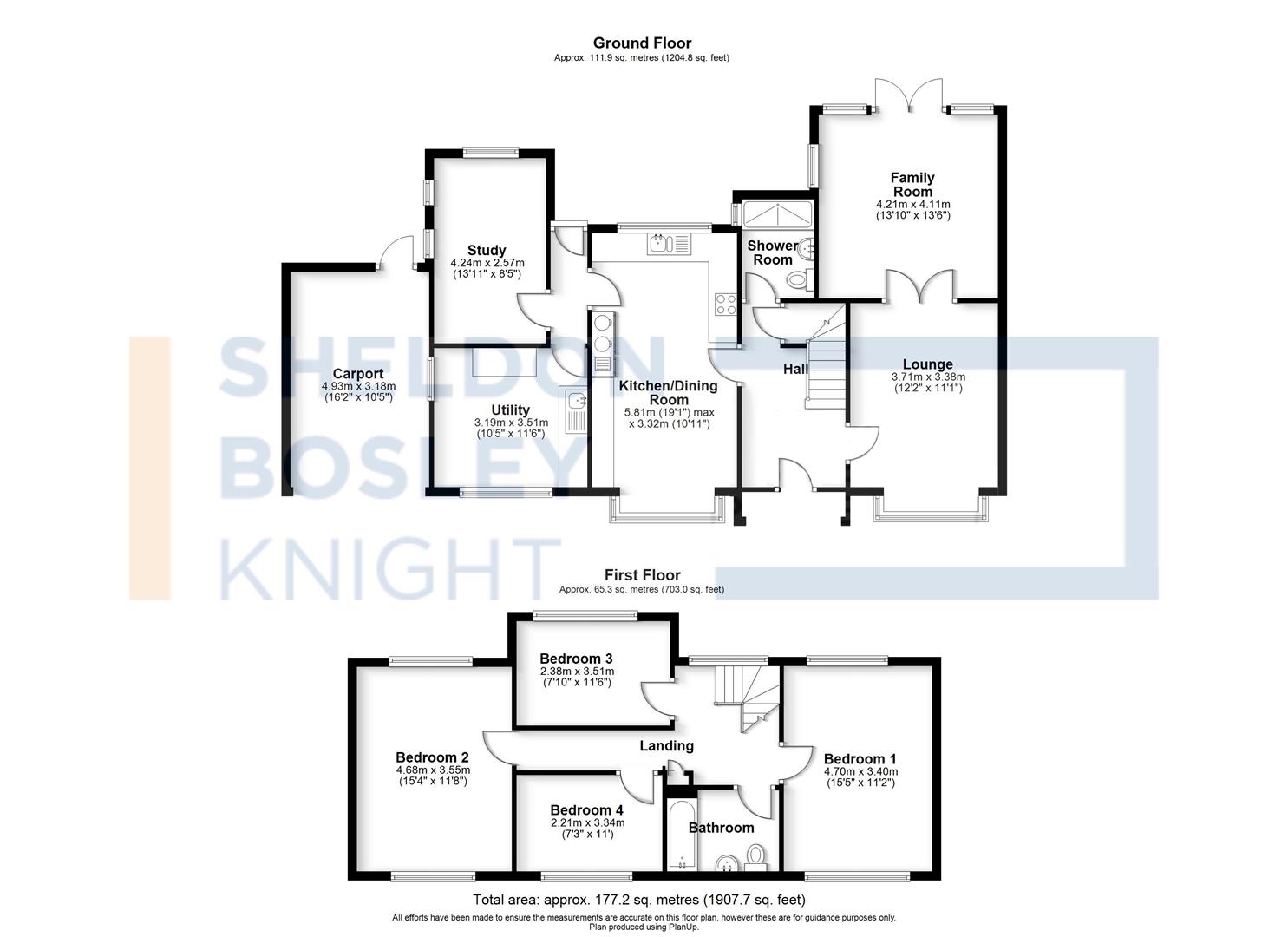 The ground floor boasts a generous and flowing layout, featuring a bright and welcoming entrance hall that leads to a spacious lounge and an elegant family room. The heart of the home lies in the open-plan kitchen/dining room, with easy access to the adjoining utility room. A separate study adds versatility, perfect for working from home or creating a playroom or hobby space. Completing the ground floor is a convenient shower room and access to a covered carport.