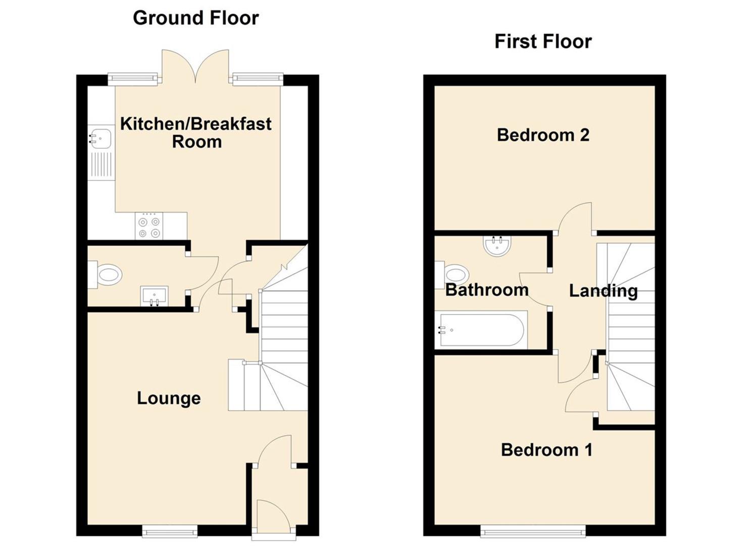 The property briefly comprises:- entrance hall, lounge, kitchen-diner with floor and wall units, under stair store and French doors opening onto the rear garden, as well as a ground floor WC. Off the landing to the first floor, you are presented with two generous bedrooms, both spanning the width of the property, and the the three piece-family bathroom with shower over the bath.