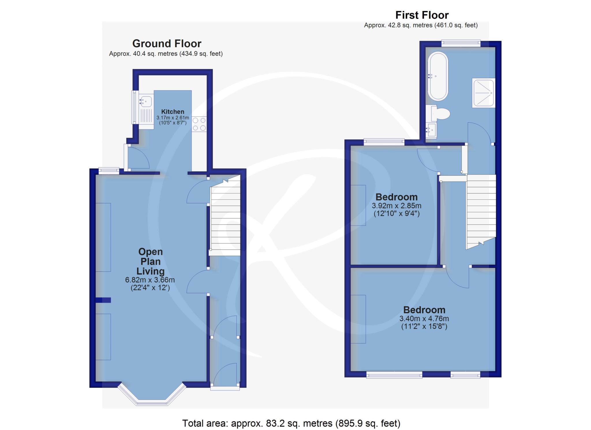 Upstairs, the landing leads to two well-proportioned double bedrooms. The master bedroom is particularly spacious, boasting dual windows that overlook the front of the property. The stunning bathroom has been thoughtfully designed, complete with a freestanding bathtub, separate shower cubicle, vanity unit, and WC - creating a luxurious and relaxing retreat.