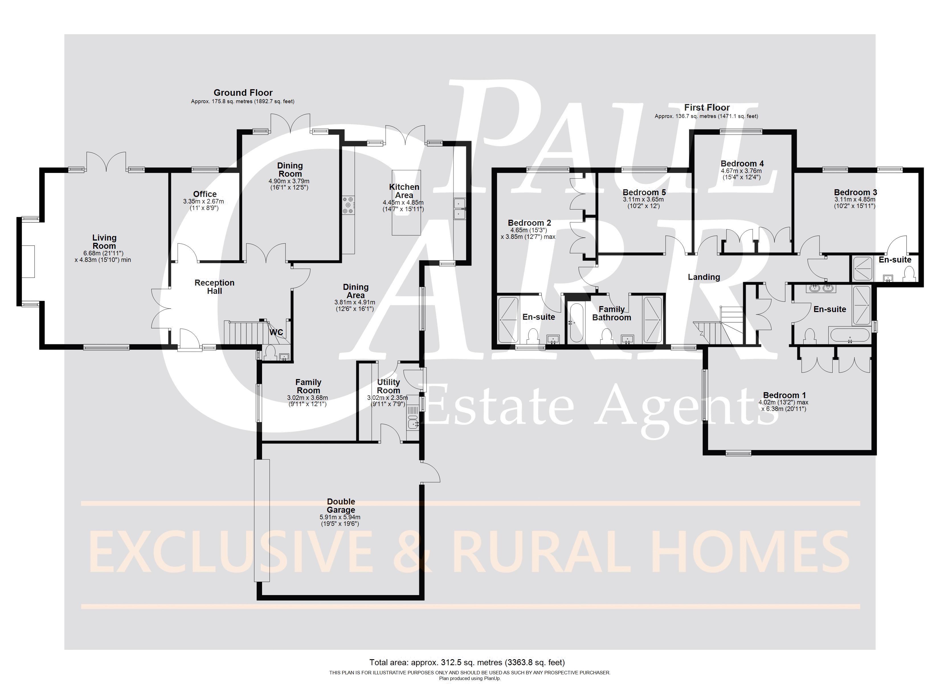 To the first floor, the luxurious feel continues with a bright landing giving access to the bedrooms and family bathroom. The principal bedroom suite is both generous and luxurious with an initial walk-in wardrobe area leading through to the bedroom and en-suite. The stunning en-suite features both a bath and walk-in shower cubicle with rainfall shower head, low level wc and twin sinks and beautiful tiling. The main bedroom area has additional fitted wardrobes and has the potential to extend into the roof space over the garage to create a dressing room should the new owner so wish. Bedroom two also benefits from having built-in wardrobes and enjoys views over the rear garden. A door leads to the gorgeous en-suite with low level wc, wash hand basin in vanity unit and walk-in shower. The third bedroom also enjoys views over the rear garden and benefits from both built-in wardrobes and a stylish en-suite with low level wc, wash hand basin in vanity unit and walk-in shower. Bedrooms four and five enjoy views over the rear with bedroom four benefitting from built-in wardrobes. The family bathroom is beautifully styled and presented with a bath and separate shower cubicle with rainfall shower head, low level wc and wash hand basin.