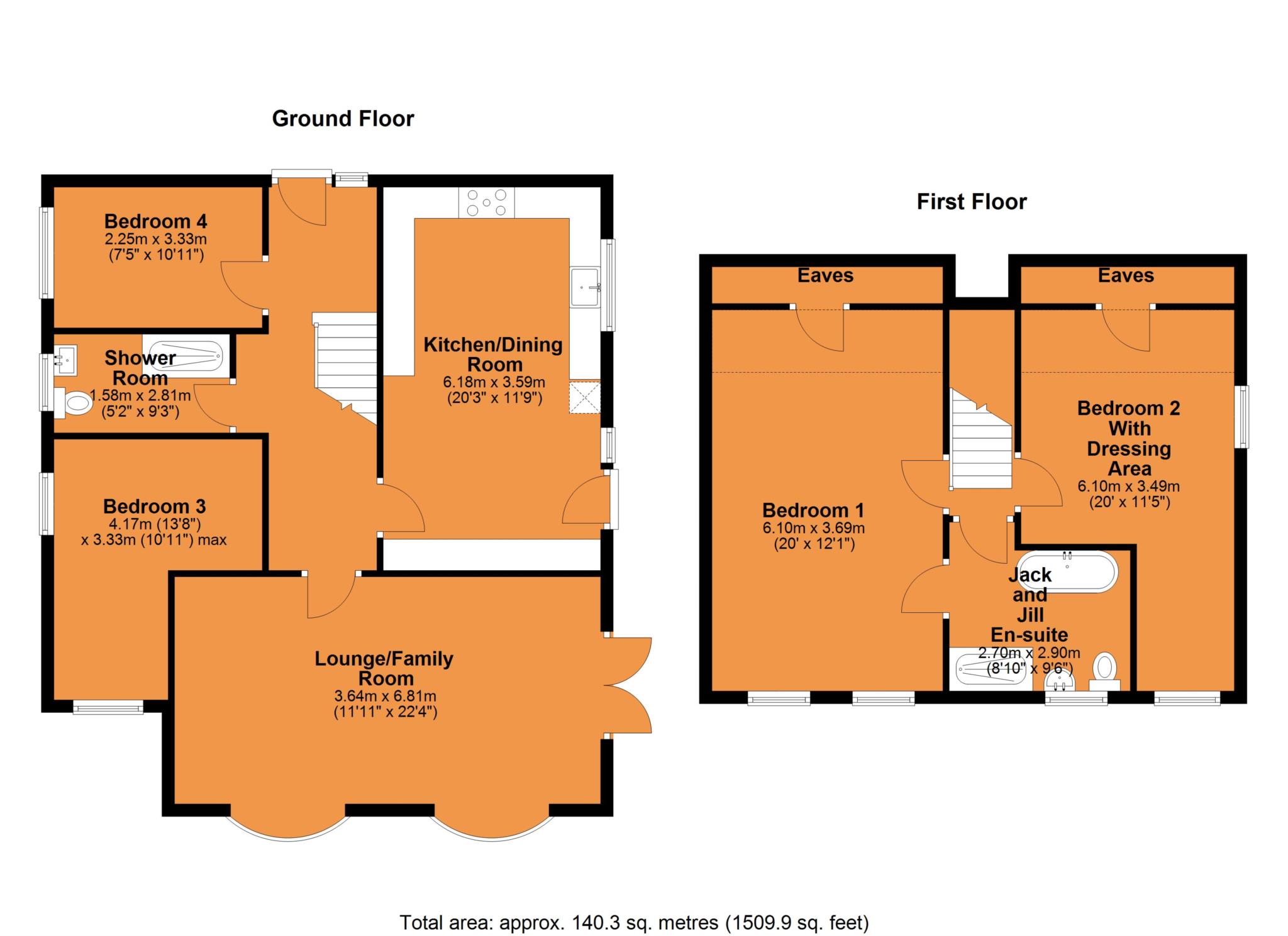 To the first floor there are two double bedrooms and a Jack and Jill four piece bathroom that joins the main bedroom and the landing.