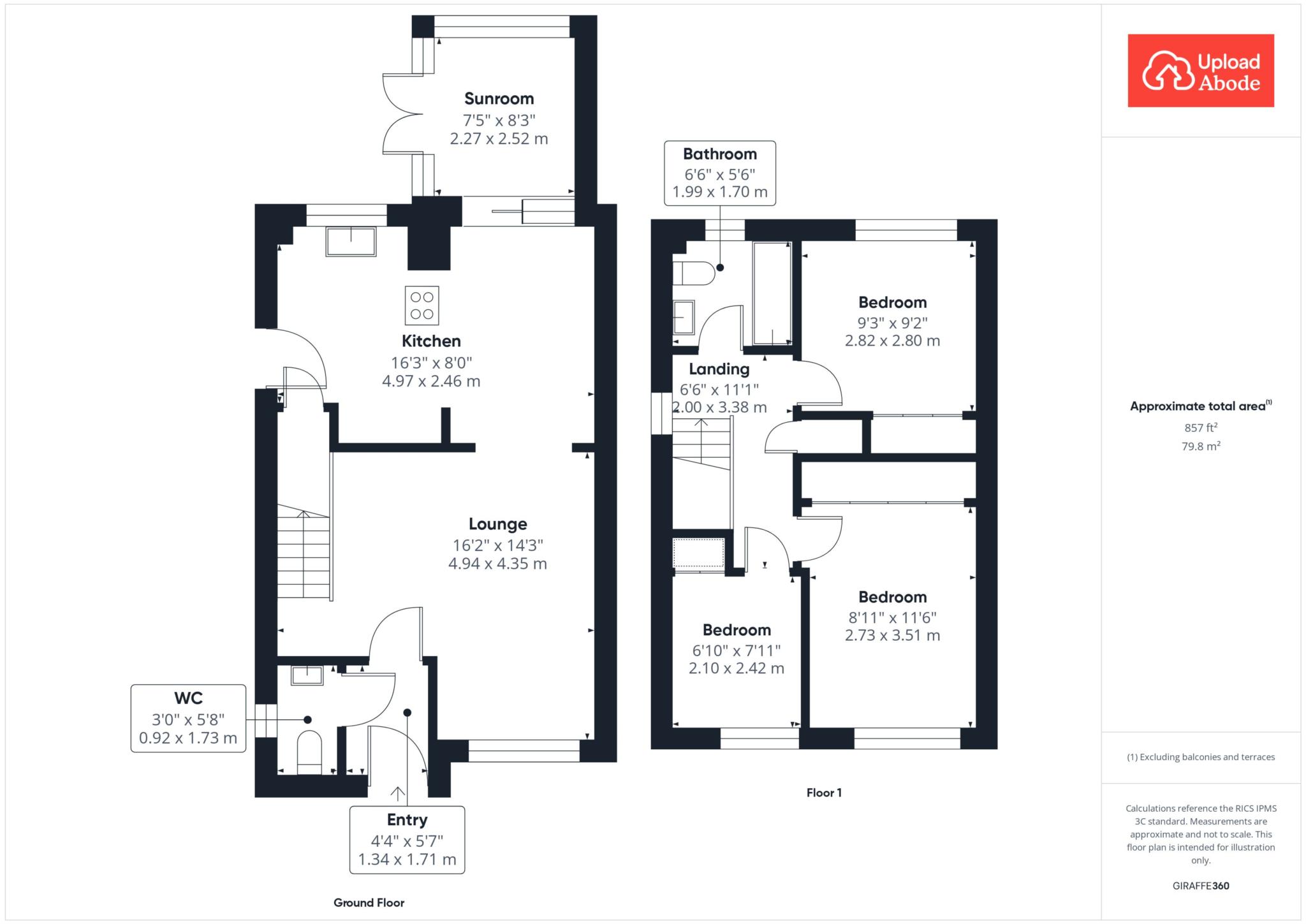 Upstairs, you will find two spacious double bedrooms with built-in wardrobes and a third versatile bedroom that`s perfect as a nursery, dressing room or home office. The contemporary bathroom is finished with sleek tiles and a bath with shower overhead, giving a fresh, modern feel.