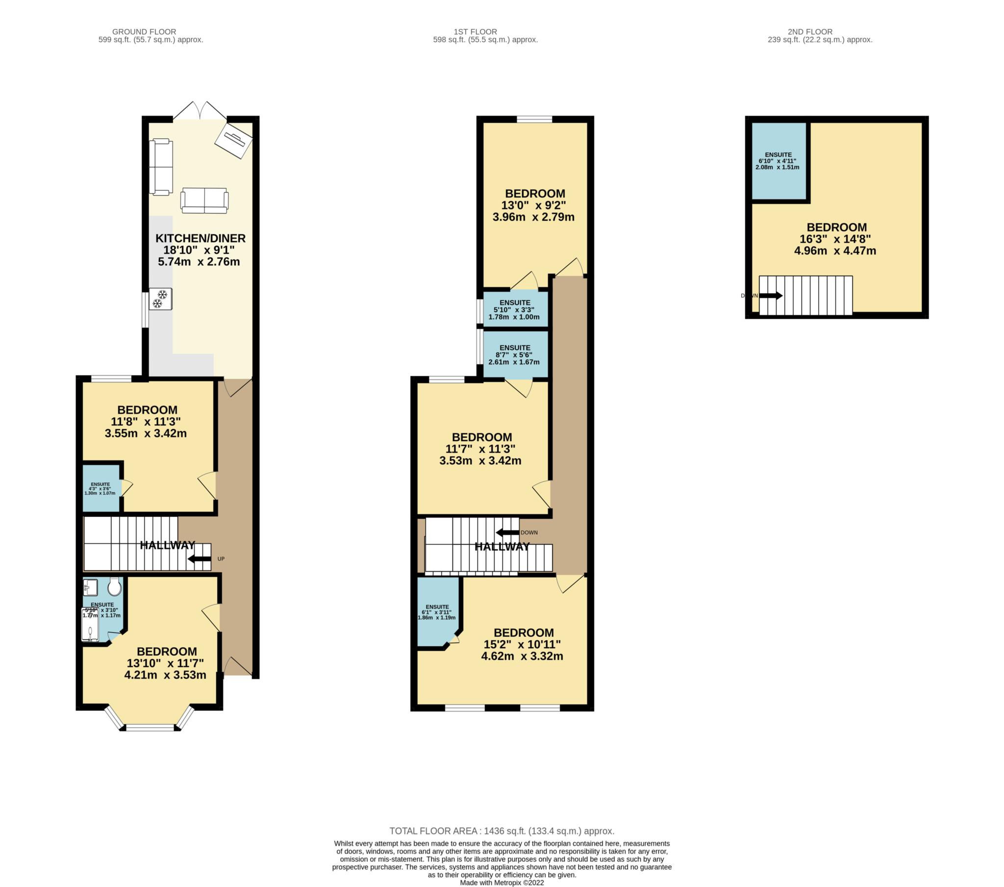 Each of the six generously sized double bedrooms benefits from its own modern en-suite bathroom, offering both privacy and convenience a highly attractive feature for the student and professional rental market. The property also includes a large, well-equipped kitchen and communal dining area, creating a comfortable and practical shared living space.