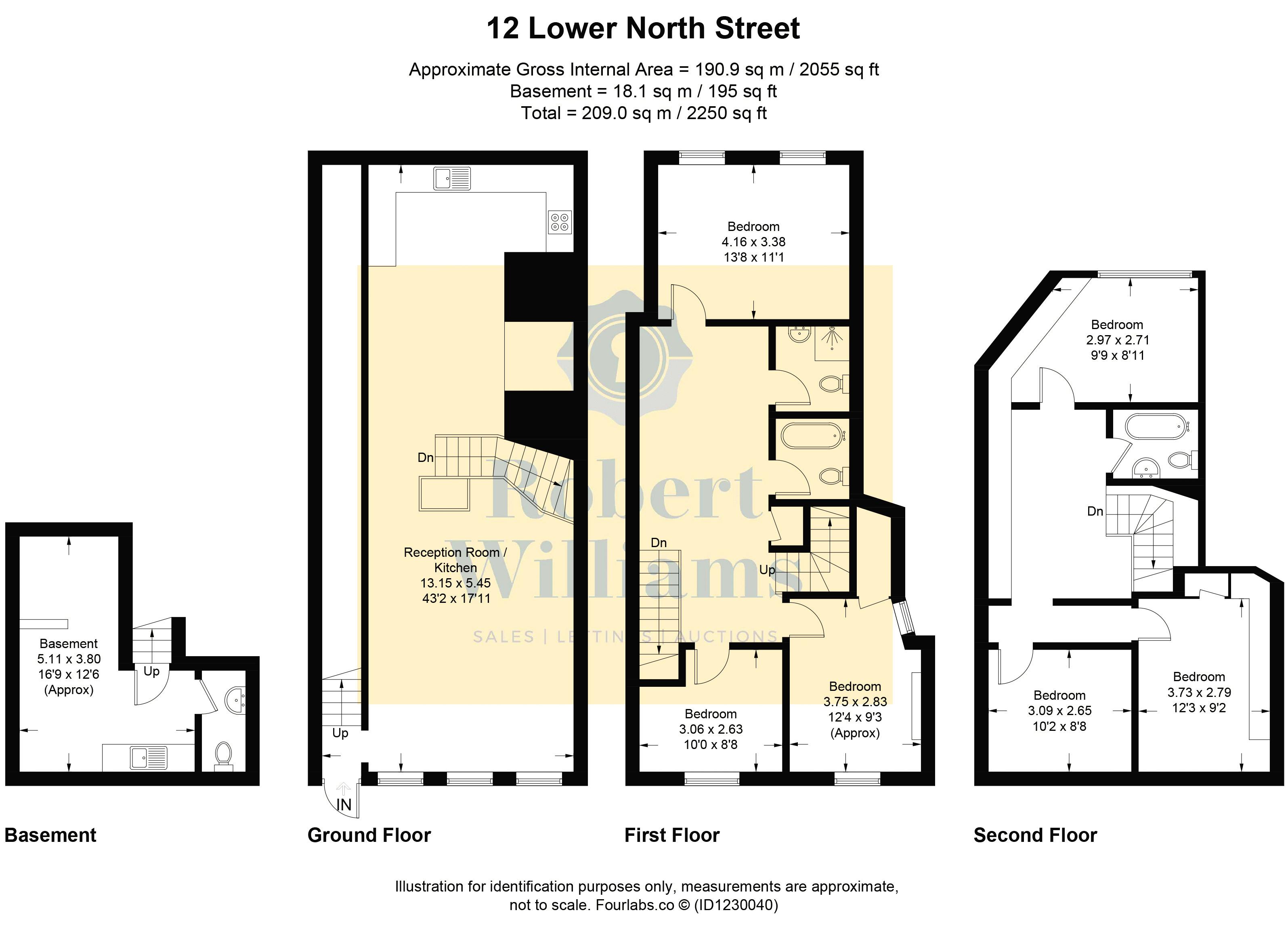 The ground floor features a generous open-plan living and dining area, perfect for communal living, with a modern kitchen located at the rear. On the first floor, there are three double bedrooms accompanied by two bathrooms. The second floor houses three additional bedrooms and a third bathroom, ensuring ample facilities for all occupants. A large basement adds further value, offering extensive storage space along with a WC.