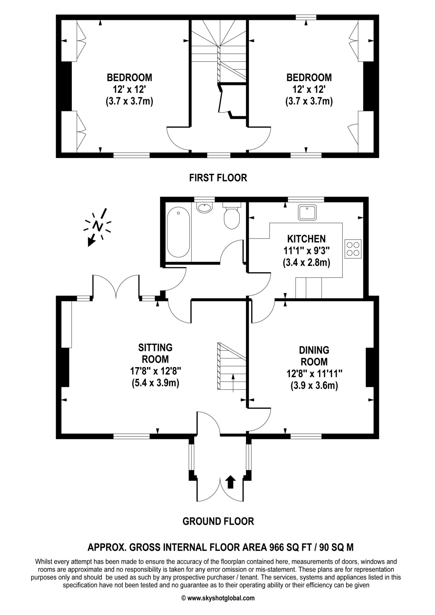The cottage comprises a dual-aspect sitting room with French doors opening into the rear garden on one side and on the other a window overlooking the front garden and path. The dining room benefits from a front garden view, and has a door leading into the kitchen. The kitchen is located off the rear of the cottage, along with a family bathroom.