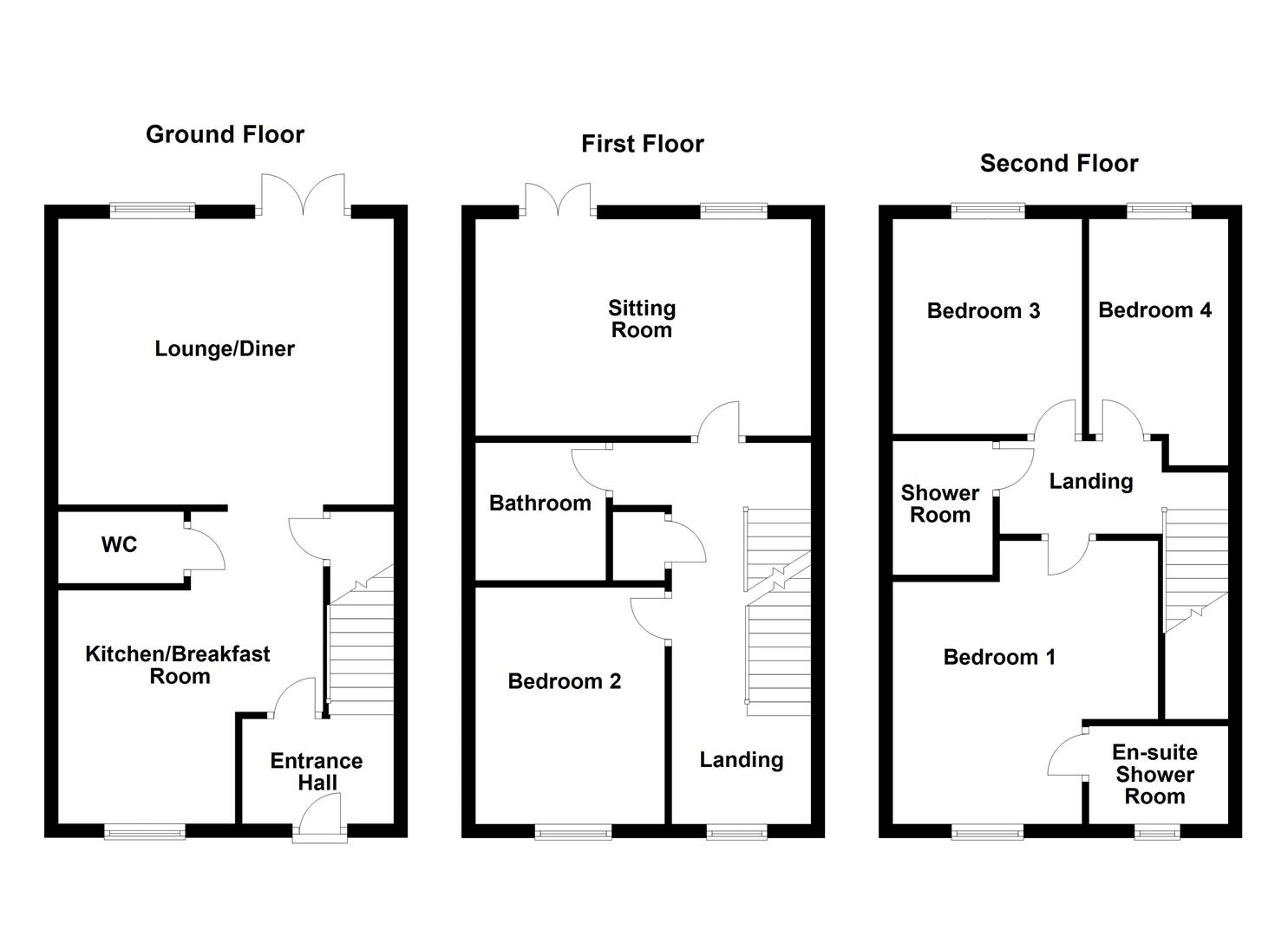 The property briefly comprises of entrance hall, kitchen/breakfast room, downstairs w.c. and lounge/diner. The first floor landing leads to a bedroom, sitting room (which has potential to be used as a bedroom) and bathroom/w.c. A further set of stairs lead to the second floor landing which in turn leads to three further bedrooms and shower room/w.c. Outside to the front is a low maintenance garden with driveway to the side providing ample off road parking for up to three vehicles leading to the single detached garage. To the rear is a tiered garden incorporating stone paved patio area, raised decked patio area and lawned garden, fully enclosed by timber fencing.