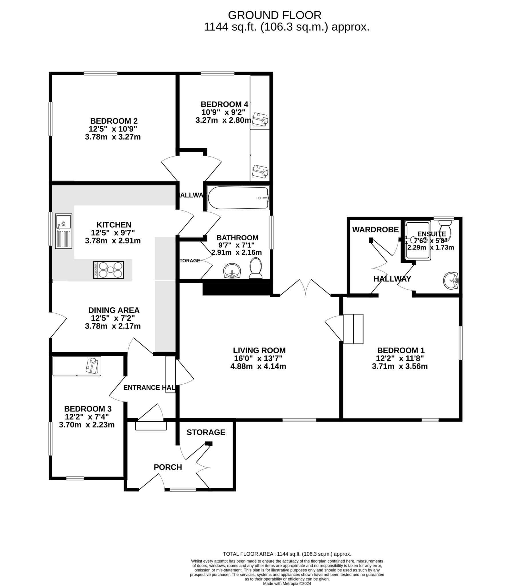 Bedroom Four - 10'9" (3.28m) Max x 9'2" (2.79m)