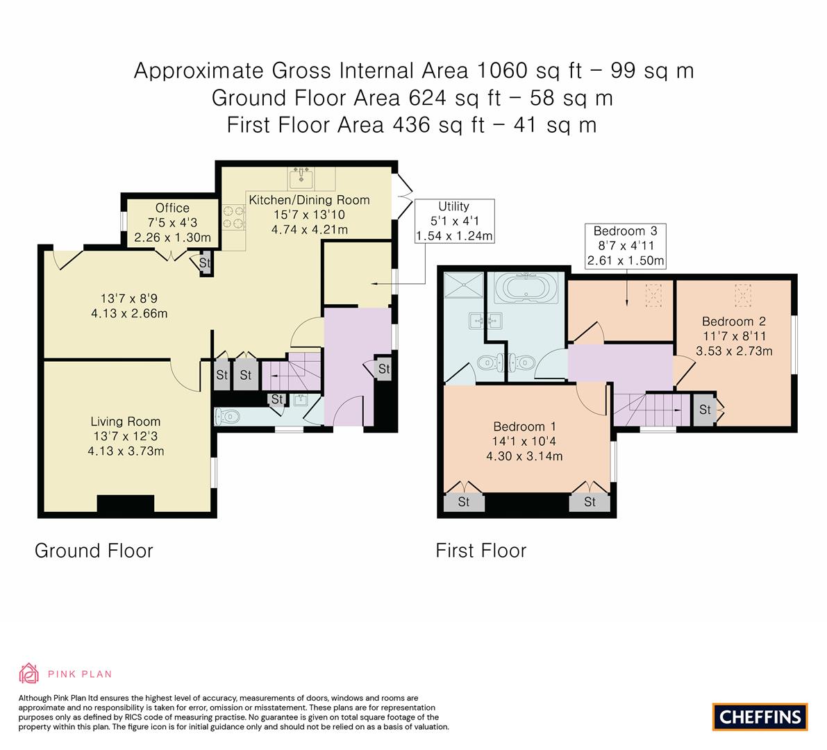 Cloakroom - window to front aspect, hand wash basin, WC, storage cupboard, radiator.