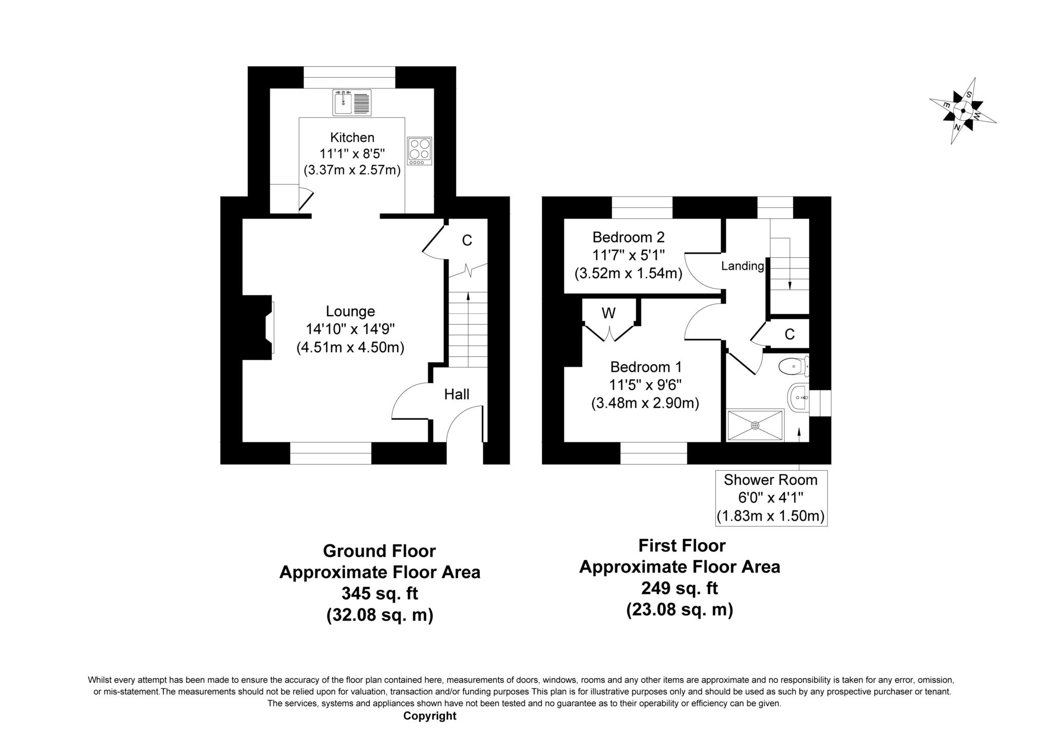 Upstairs, you will find two well-proportioned bedrooms, both offering plenty of natural light and storage space. The family shower room is sleek and stylish, featuring a shower cubicle, wash basin, and WC.