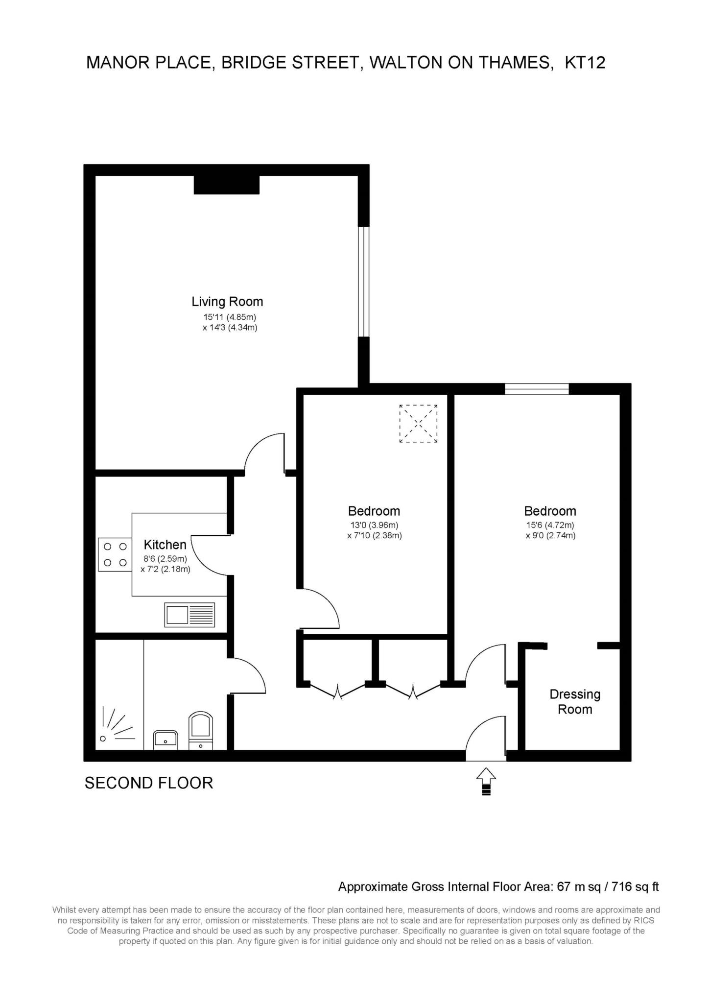 Tucked away, yet in the heart of Walton, Manor Place is moments away from all the known high streets shops and supermarkets. Built in 2000 and comprising 53 one and two bedroom apartments set over 3 floors all with lift access, the development also offers private gated parking for 35 cars plus guest spaces, which is a blessing considering its town centre location. Residents additionally benefits from the use of the beautifully kept walled garden and seating area to the rear of the development. With Manor Place walking distance from both the River Thames and Walton high street, the development offers an excellent lifestyle combining the local countryside and town centre convenience.
