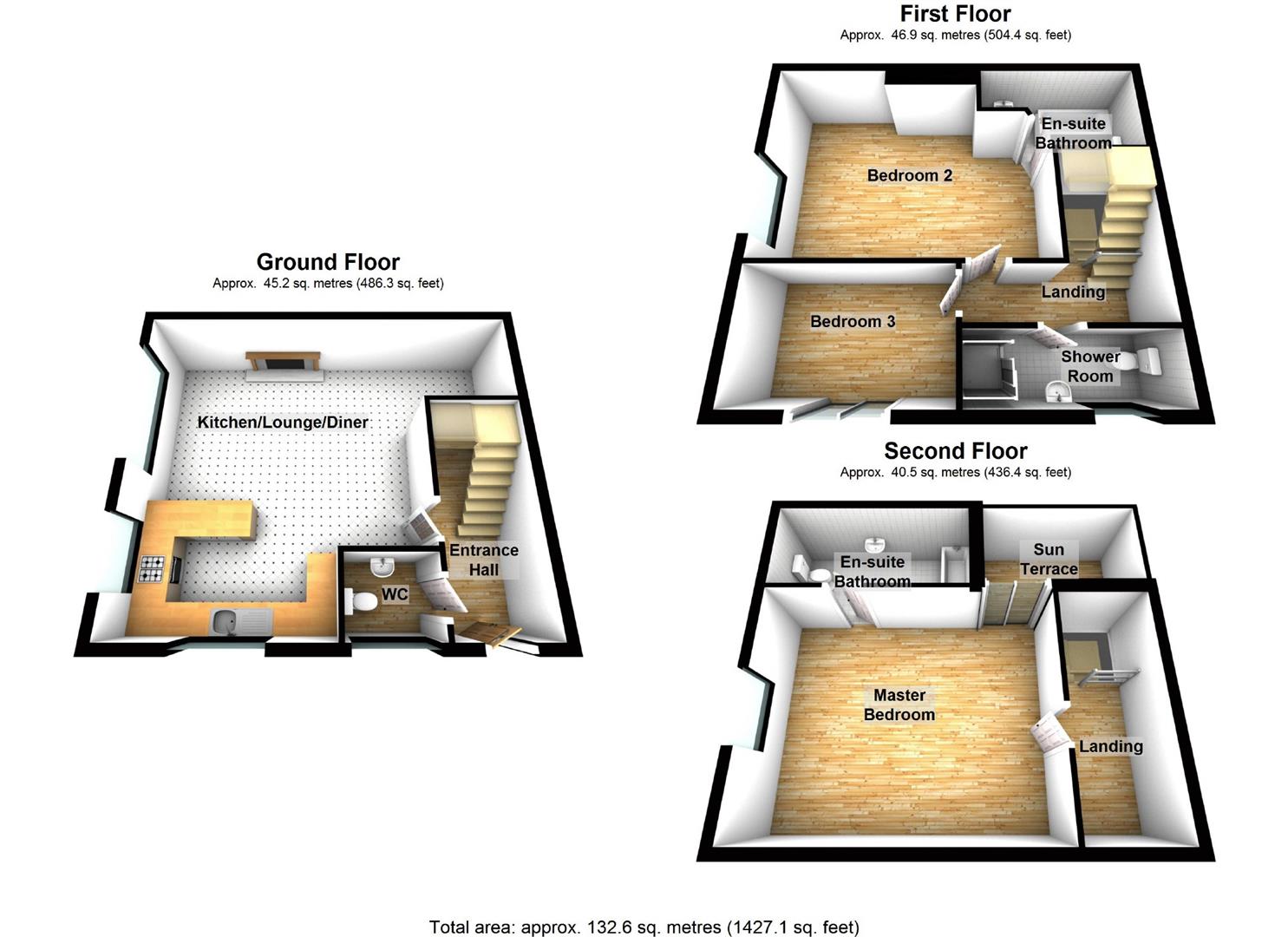 Spanning three floors, the accommodation comprises three generous and bright double bedrooms, ensuring ample space for relaxation and privacy. The property features a gorgeous open plan sitting room, kitchen, and dining area, perfect for entertaining guests or enjoying family meals. The large, sleek modern fitted kitchen is a chef's dream, equipped with contemporary appliances and plenty of storage.