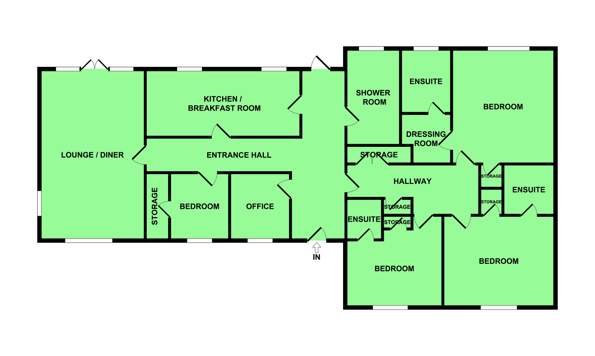 Details - Bycroft Estate Agents are delighted to present this beautifully presented, executive, detached bungalow set in 1/3 acre in this quiet and secluded village location of Burgh Castle enjoying uninterrupted field views to both the front and rear together with double garage (with planning permission to convert to an Annex if required). Accommodation comprises spacious entrance hall, lounge/diner, kitchen/breakfast room, study, four bedrooms three with en suites and the principal also with a dressing room, shower room, front garden with raised veranda to enjoy the views, off road parking, double garage, side lawn with timber outbuilding ideal for home working, enclosed rear garden, double glazing and central heating via LPG bulk storage tank.