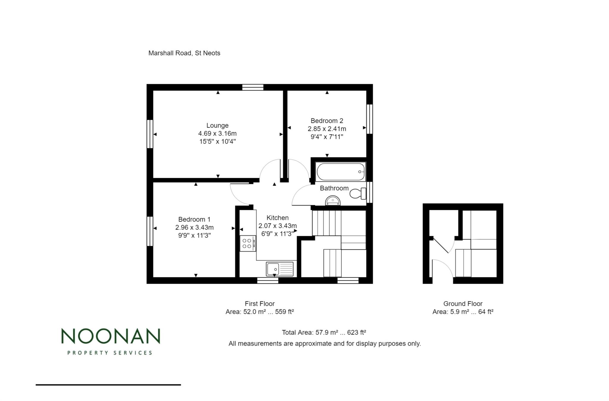 Marshall Road is a two bedroom apartment in a small development in St.Neots, situated within walking distance of local amenities, town centre and St.Neots mainline station that has direct links to London.The property benefits from its own independent entrance and comprises of entrance hallway, utility area/storage cupboard with stairway leading to: a modern kitchen with integrated dishwasher, oven & hob, lounge/dining room, TWO bedrooms and bathroom with shower over bath.