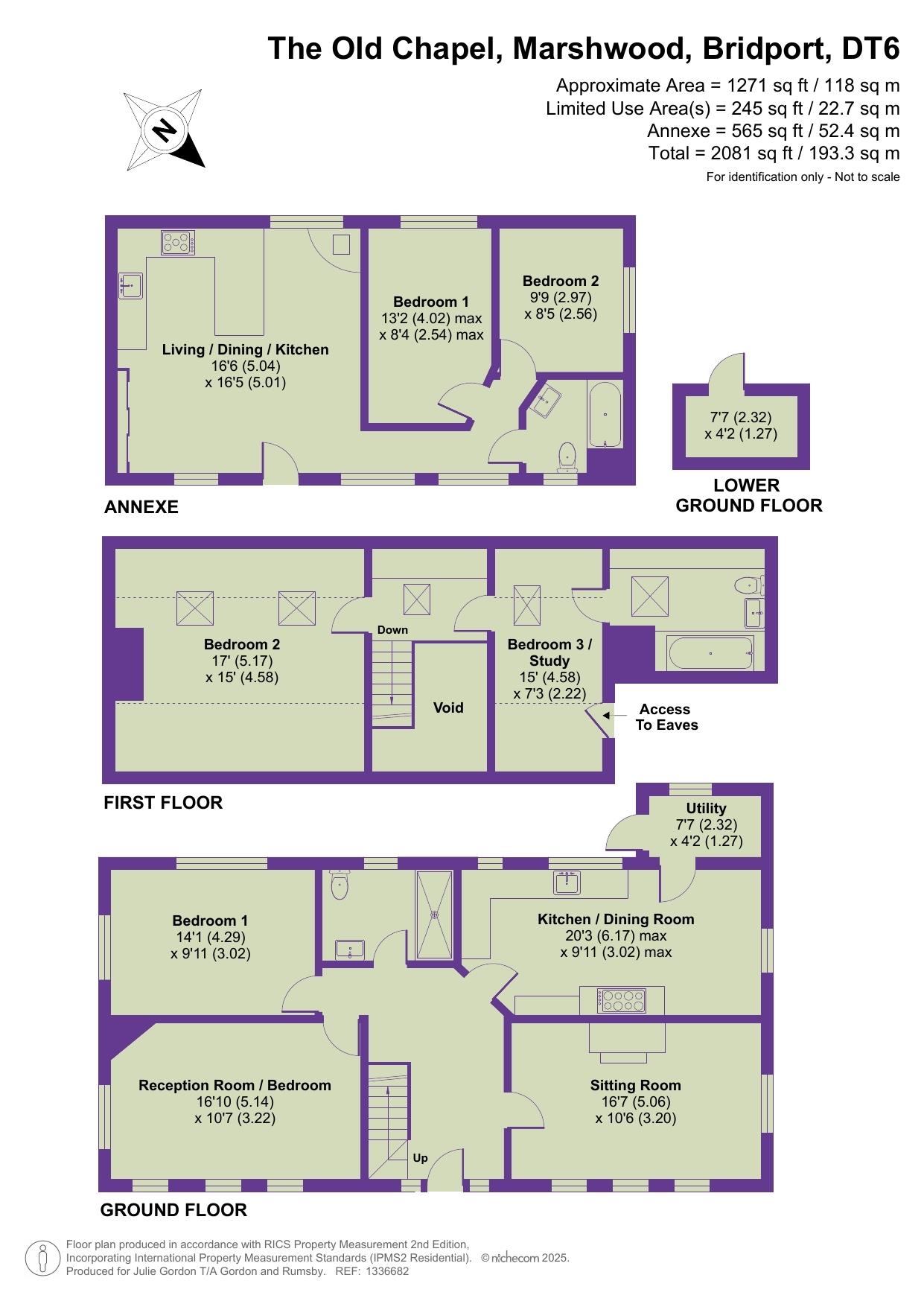 A charming and versatile detached character home with two bedroom annexe, situated on the outskirts of the west Dorset village of Marshwood. The house is a converted chapel and now Listed Grade II with spacious accommodation over two floors plus the self-contained annexe. Slightly set back from the road, the property has a gated driveway leading to parking space for a number of vehicles. Gardens lie to the front (south east) and side as well as a secluded seating area at the back of the annexe offering fabulous long range countryside views. The windows are a particular feature of the property, many of them arched and internal doors are attractive ledge and brace, latched doors. On entering at the front, a large hallway offers an immediate first impression of space and light, with the stairs leading up to a galleried landing. To one side of the hall is a cosy sitting room with fireplace and the attractive country kitchen lies to the back. A door from here opens to a utility room and on to an external door to the rear. Two other rooms are set off the hallway, which can be used as bedrooms or reception rooms with the family bathroom serving both. Upstairs are two further rooms and a bathroom. The head height is restricted in these rooms, however, they make ideal children`s bedrooms or hobby rooms. In addition, there is a walk-in loft space.