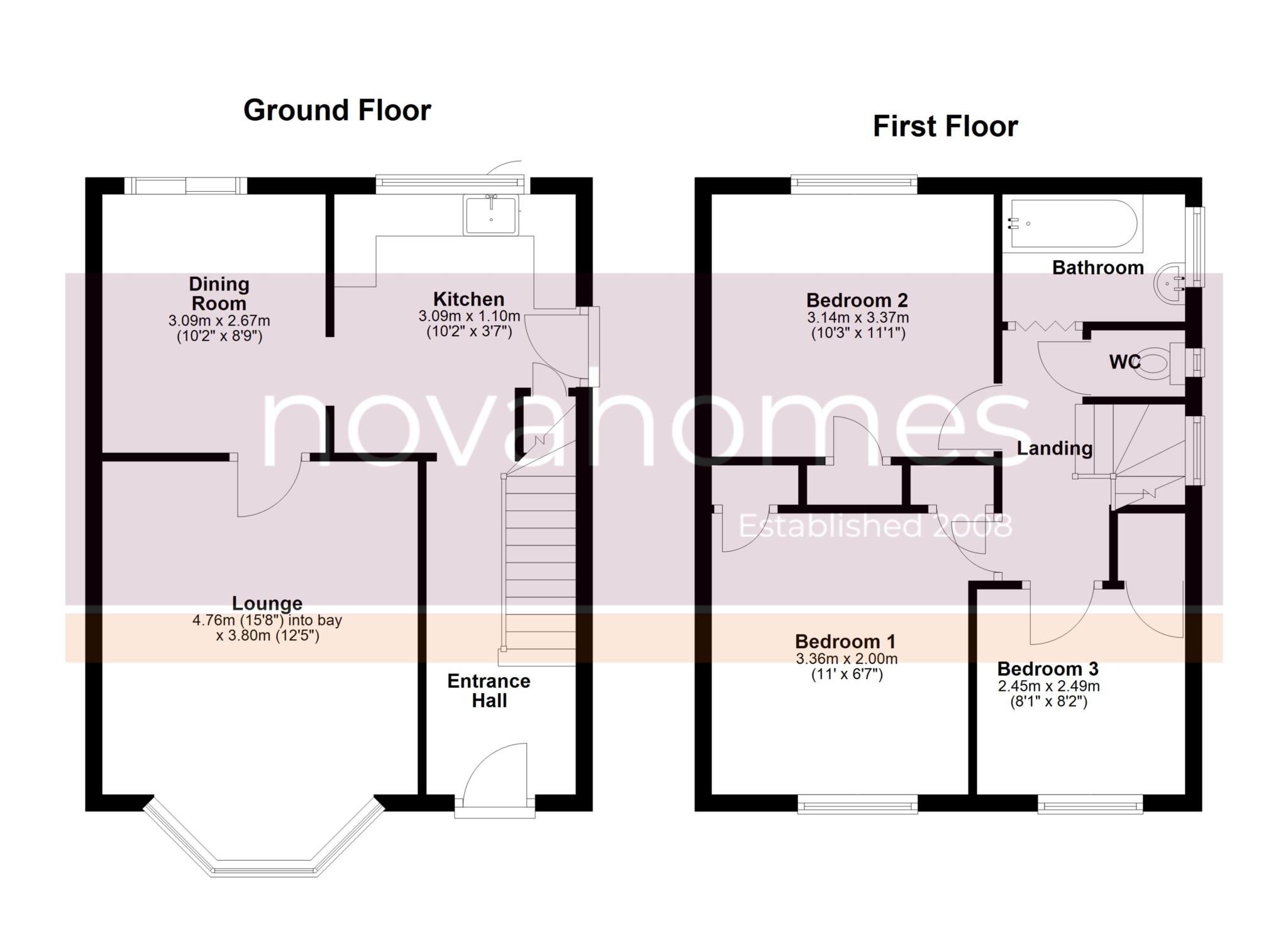 Immaculately presented throughout, the property offers a bright bay-fronted lounge, a stylish dining room with patio doors opening onto the garden, and a contemporary fitted kitchen. Upstairs you will find two excellent double bedrooms, a comfortable third bedroom and a modern family bathroom with separate WC.