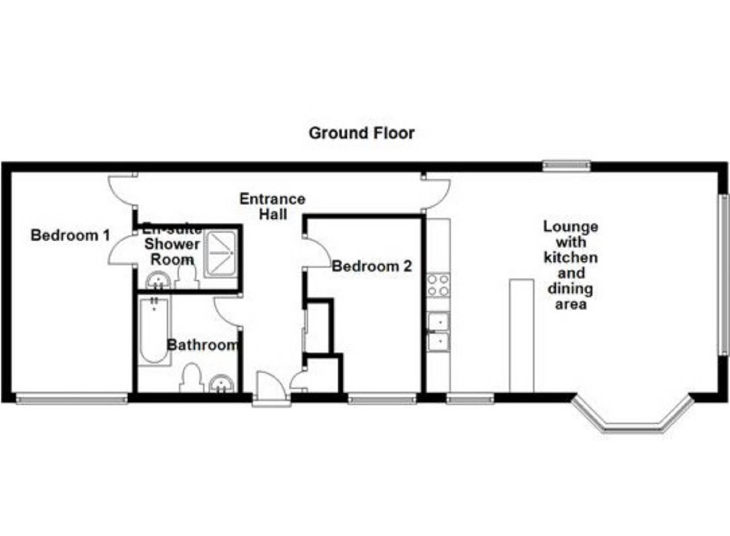 Living/Dining Kitchen - 20' x 15'2 + bay window - This spacious open plan kitchen and living space is fitted with a modern kitchen and breakfast bar area with appliances which include an electric oven, electric hob with overhead extractor, dishwasher, washer dryer, fridge and freezer. There are windows to two elevations, exposed stone work, inset ceiling spotlights and wood effect laminate flooring.