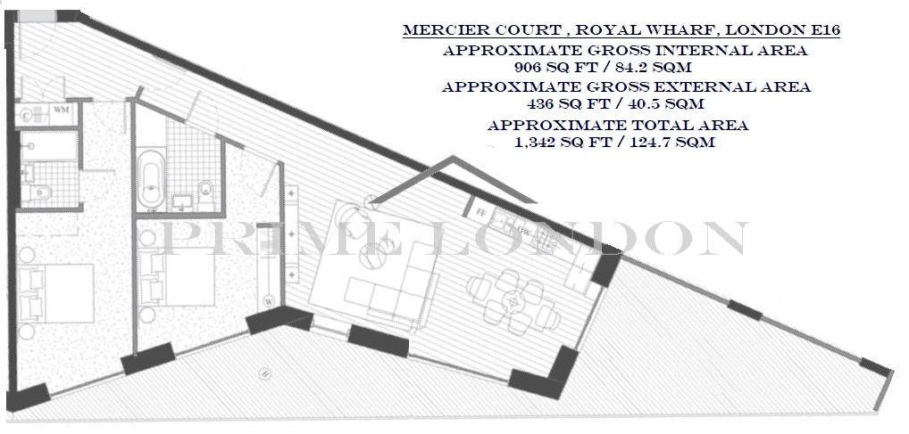 Totalling 1,342 sq ft (906 sq ft internally and 436 sq ft terrace) this unfurnished apartment offers excellent entertaining space and value, and is available for chain free sale through Prime London.