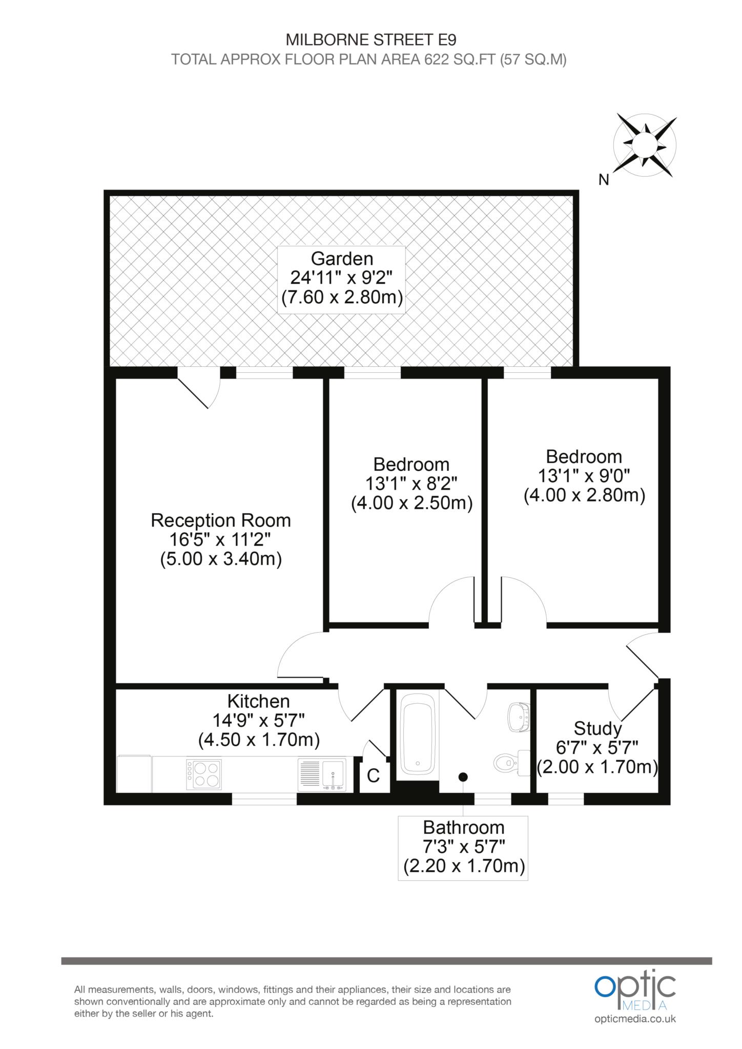 Situated on the ground floor of this purpose built building, comes this two double bedroom apartment with private rear Garden and parking. Located moments from Well Street, offering its fine array of shops, eateries and Tesco Supermarket. Victoria Park is also located locally with its village. The property is bright and airy and has well proportioned rooms, comprising an inviting living room which accesses the charming rear patio garden, a separate fully fitted kitchen, two double bedrooms, a study and a bathroom, whilst there is parking to the rear of the building. The property is sure to attract a family or professional sharers as is well placed for the many benefits of Central Hackney with Well Street Market located around the corner opening up its many amenities along with Tescos supermarket being at hand providing its everyday goods. Victoria Park is within a mile opening up its beautiful green recreational space and Victoria Park Village with its plethora of Bars, shops and Restaurants. Transport links are plentiful as many main line stations are within reach, along with lots of alternative buses.