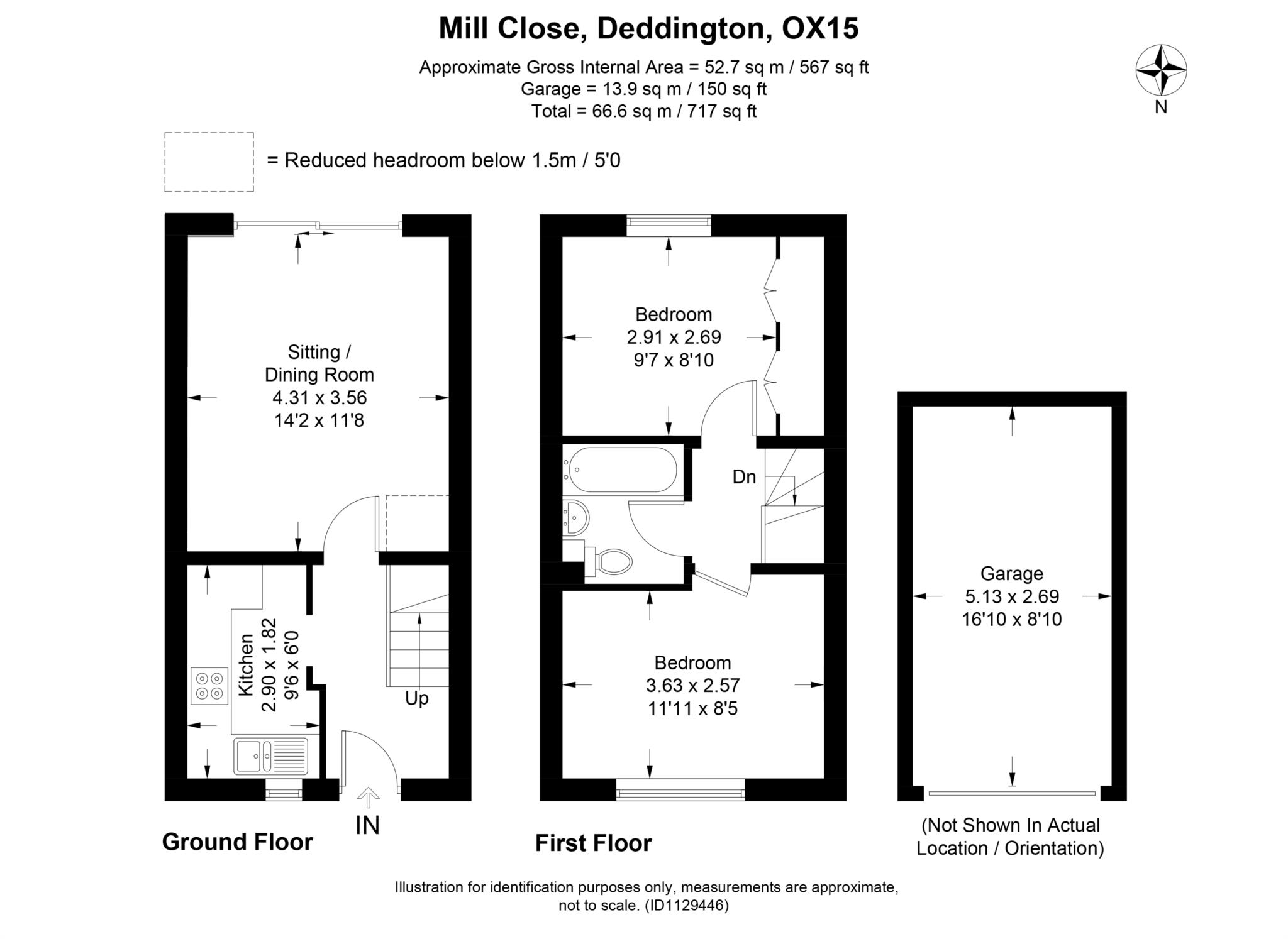 Kitchen (2.90m x 1.82m) window to the front. Tiled flooring. Fully fitted white kitchen units with white marble effect worktops. Integrated electric oven with gas hob and integrated hood. Washing machine and fridge freezer (can be removed if not required).