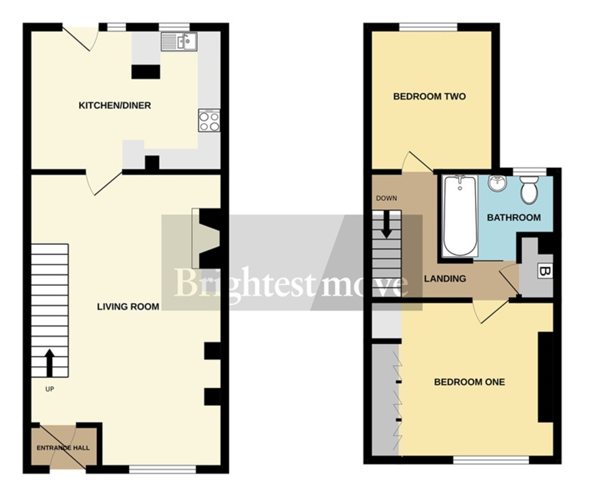 This double glazed and centrally heated two bedroom home offers spacious accommodation and briefly comprises entrance vestibule, large living room & kit/ diner to the ground floor with two double bedrooms and refitted bathroom upstairs. Externally there is a good size rear garden complete with elevated outbuilding to the rear with canopy which is ideally located to enjoy the afternoon sun .